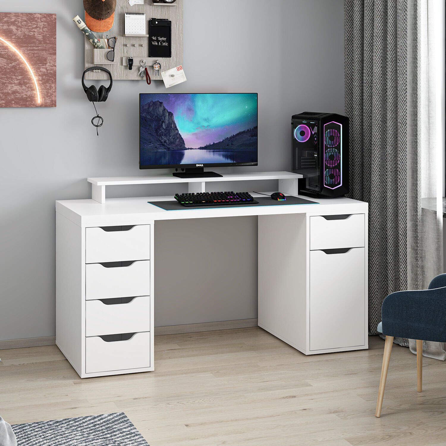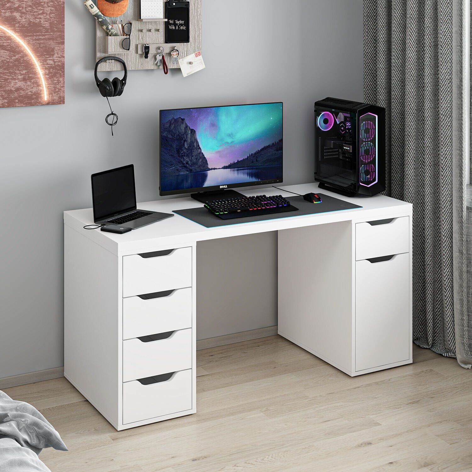 Alen 150 Cm 5 Çekmeceli Dolaplı Çalışma & Oyuncu Masası - Beyaz