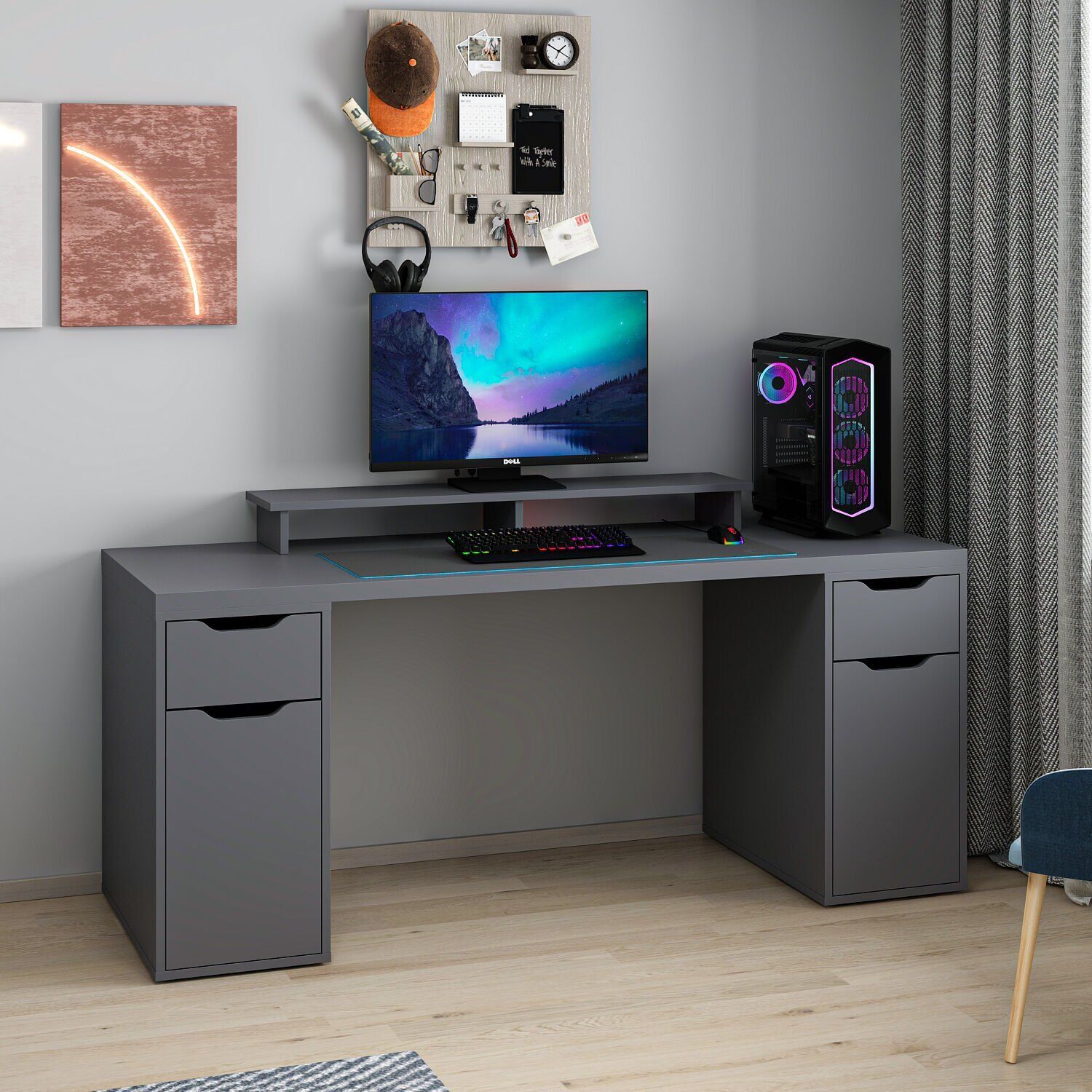 Alen 180 Cm 2 Çekmeceli 2 Dolaplı Çalışma & Oyuncu Masası - Antrasit