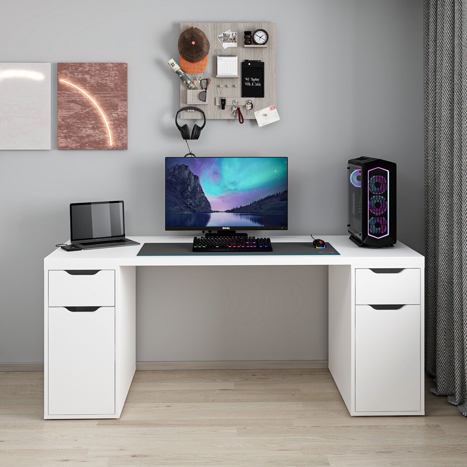 Alen 180 Cm 2 Çekmeceli 2 Dolaplı Çalışma & Oyuncu Masası - Beyaz
