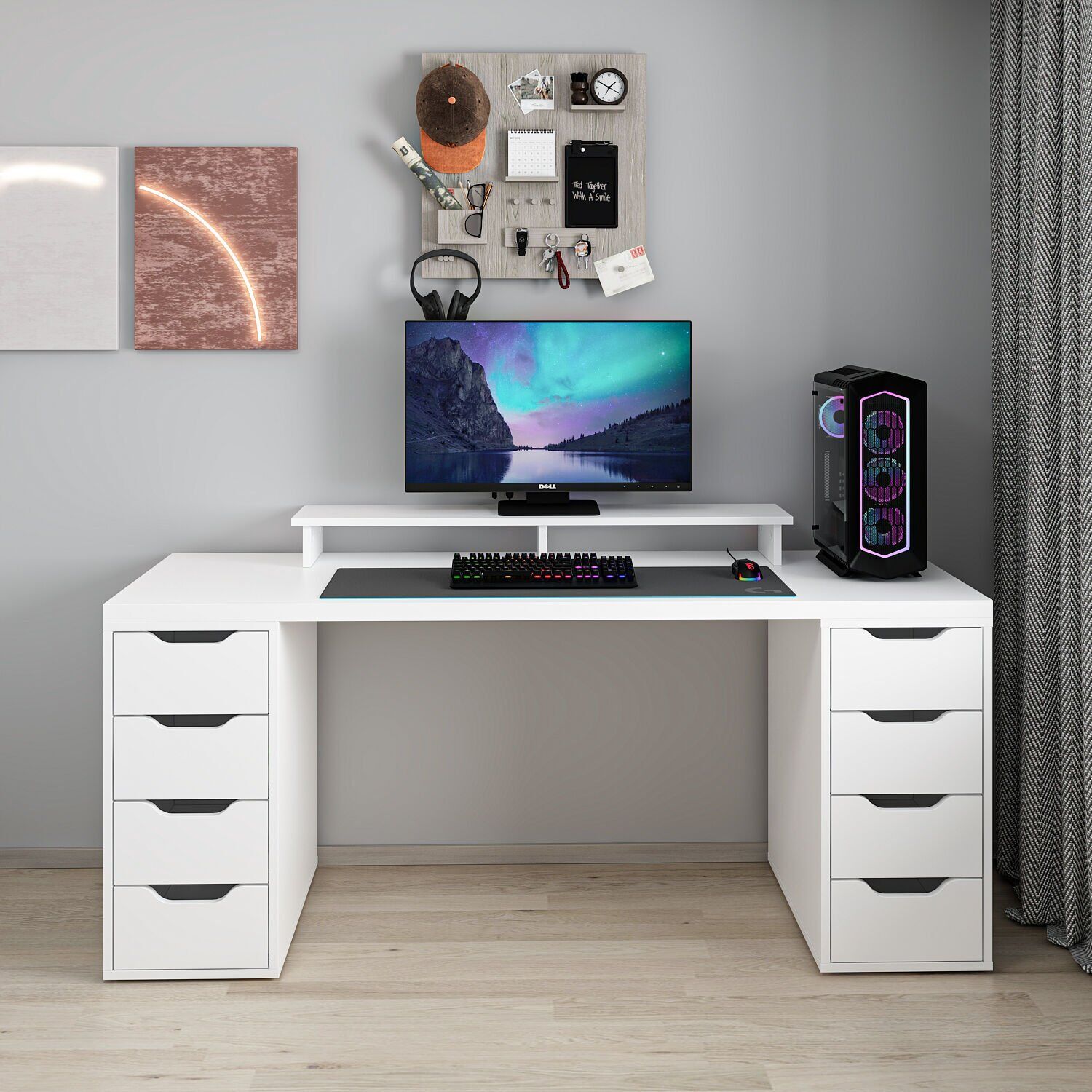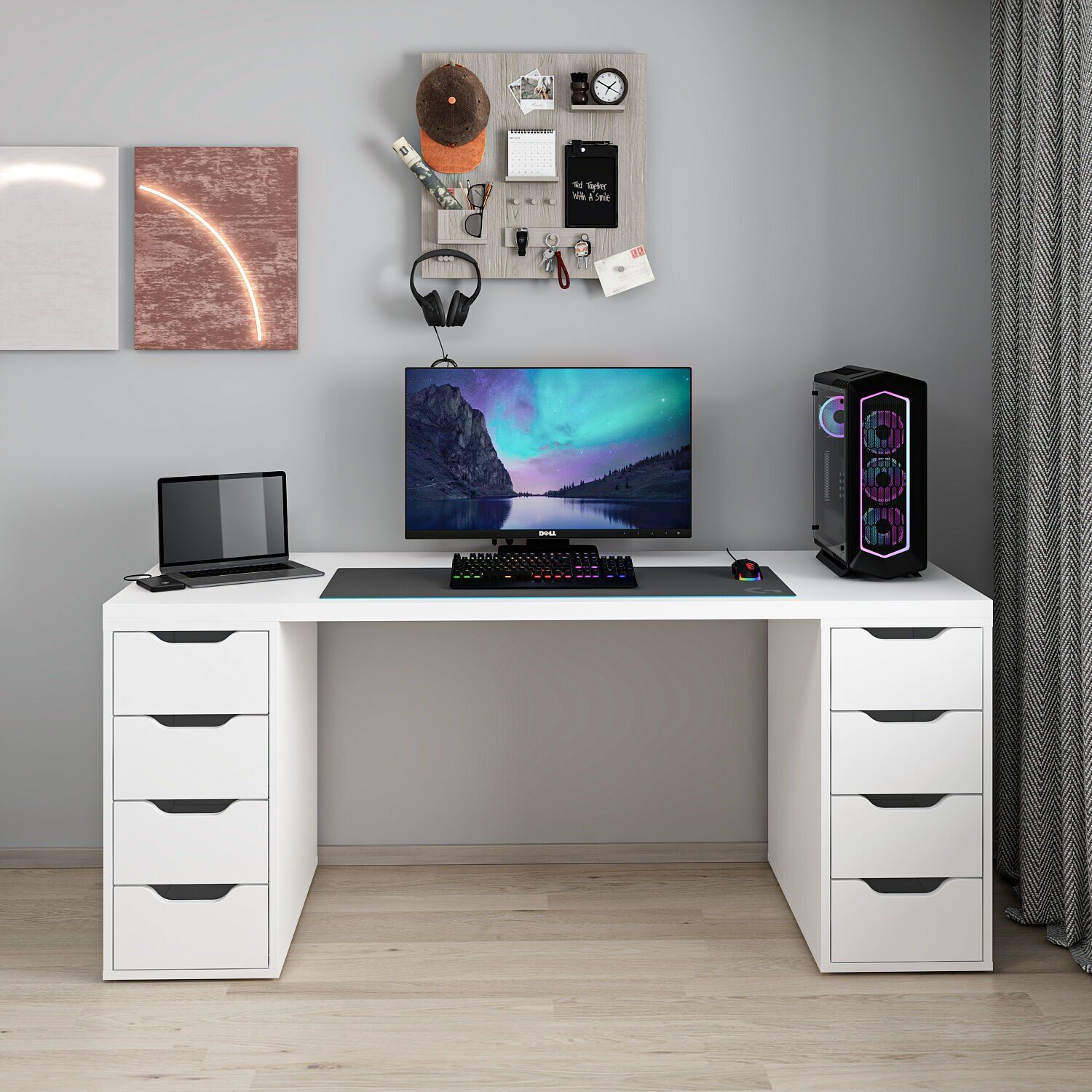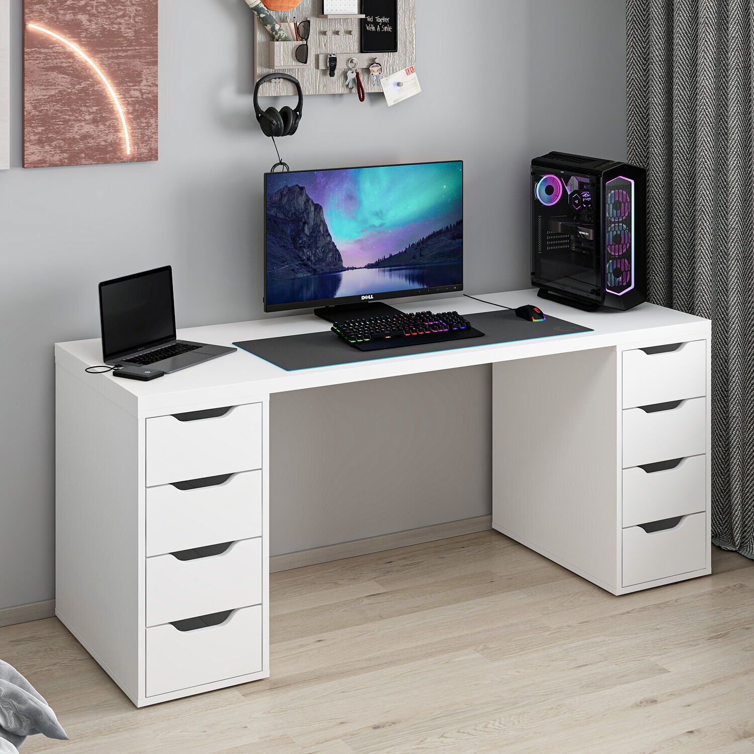 Alen 180 Cm 8 Çekmeceli Geniş Çalışma & Oyuncu Masası - Beyaz