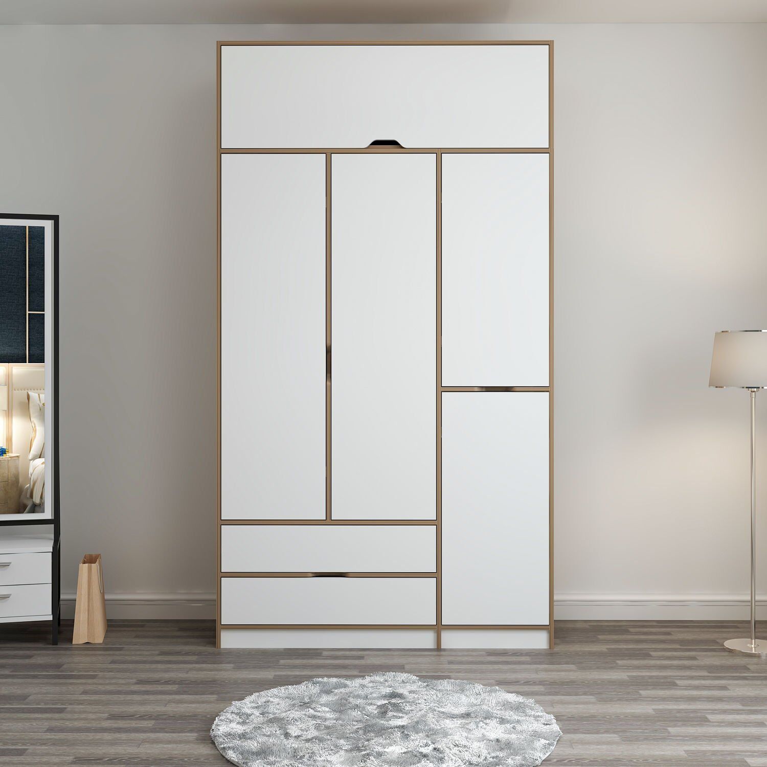 Elina 3 Kapaklı Yüklüklü Dolap - Dore/Beyaz