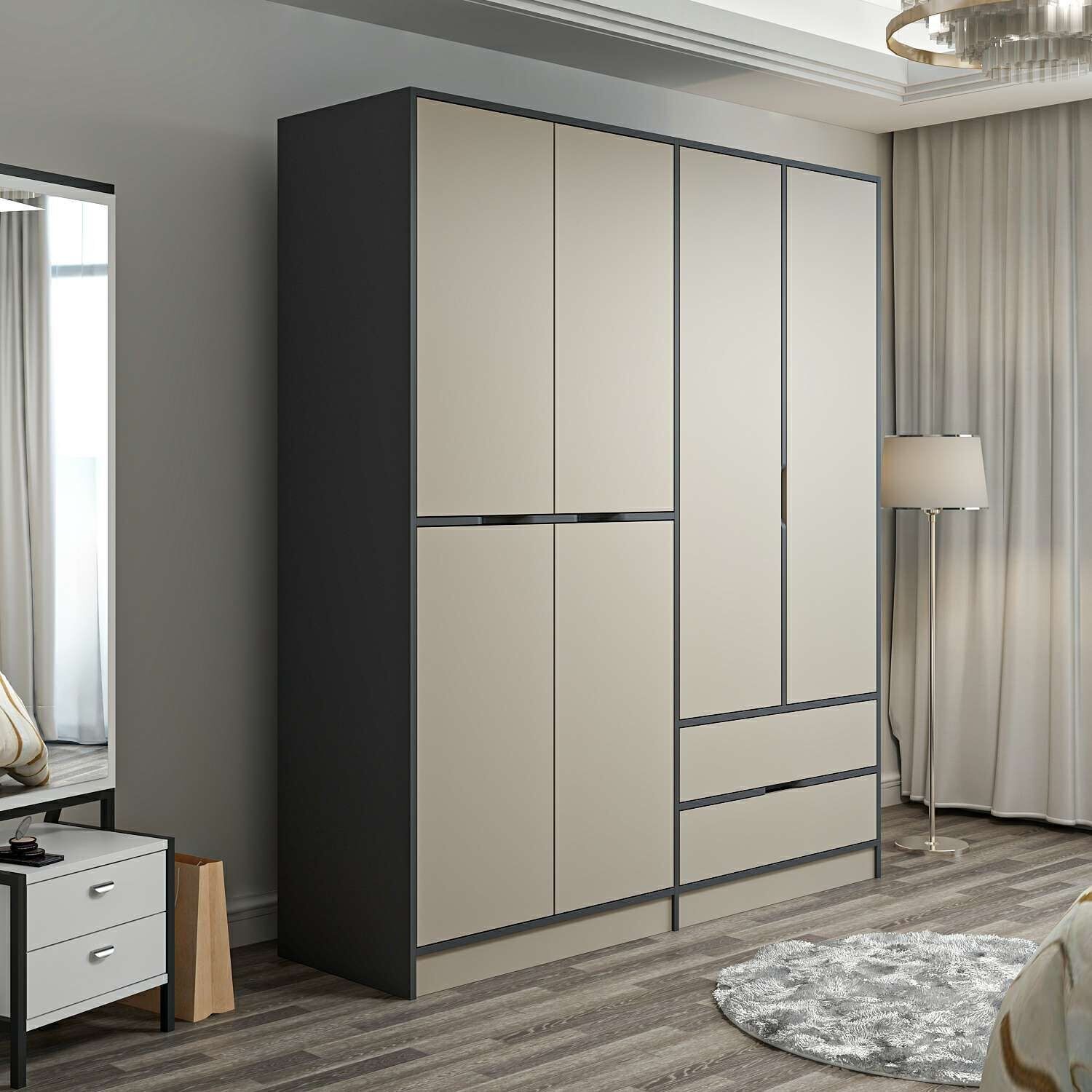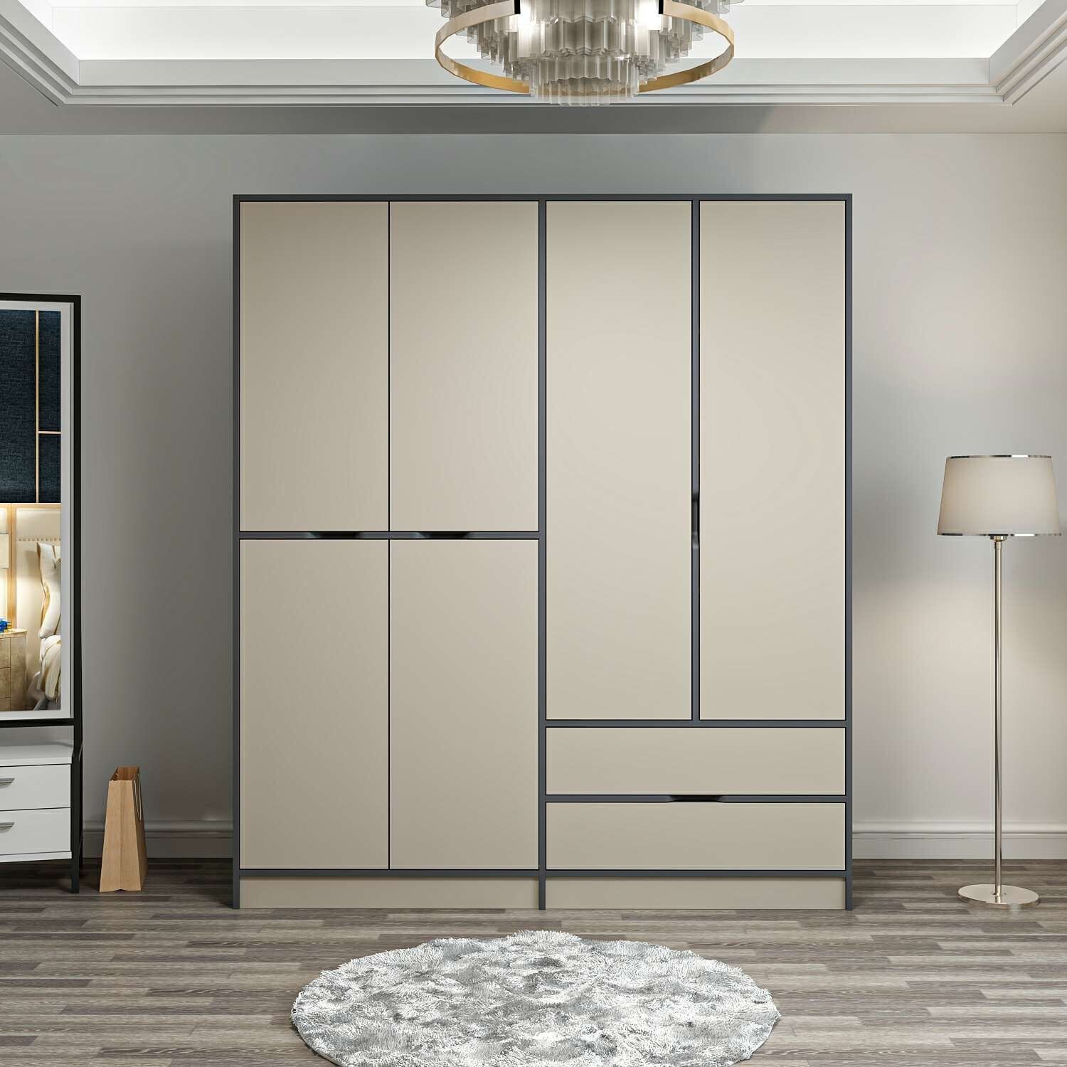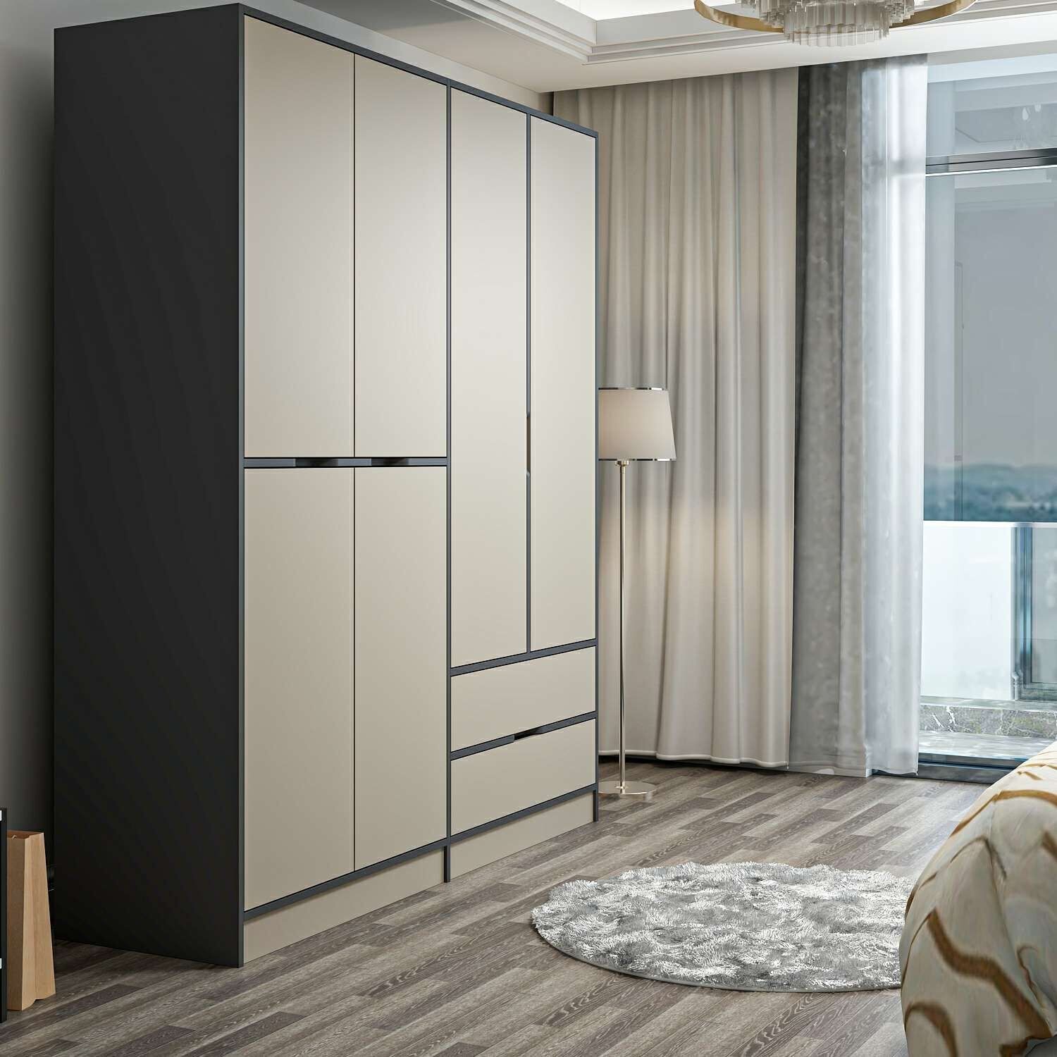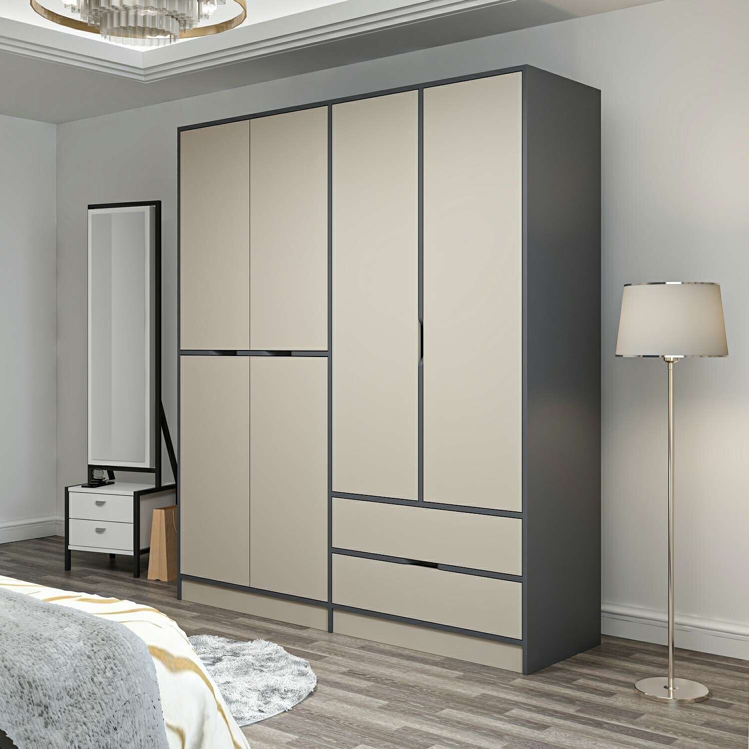 Elina 4 Kapaklı Dolap - Antrasit/Kumtaşı