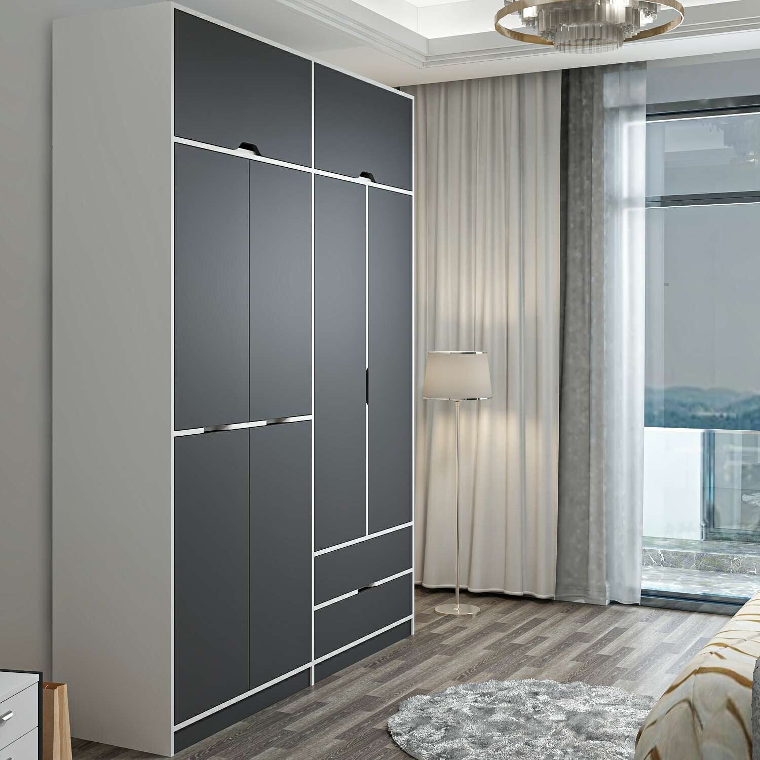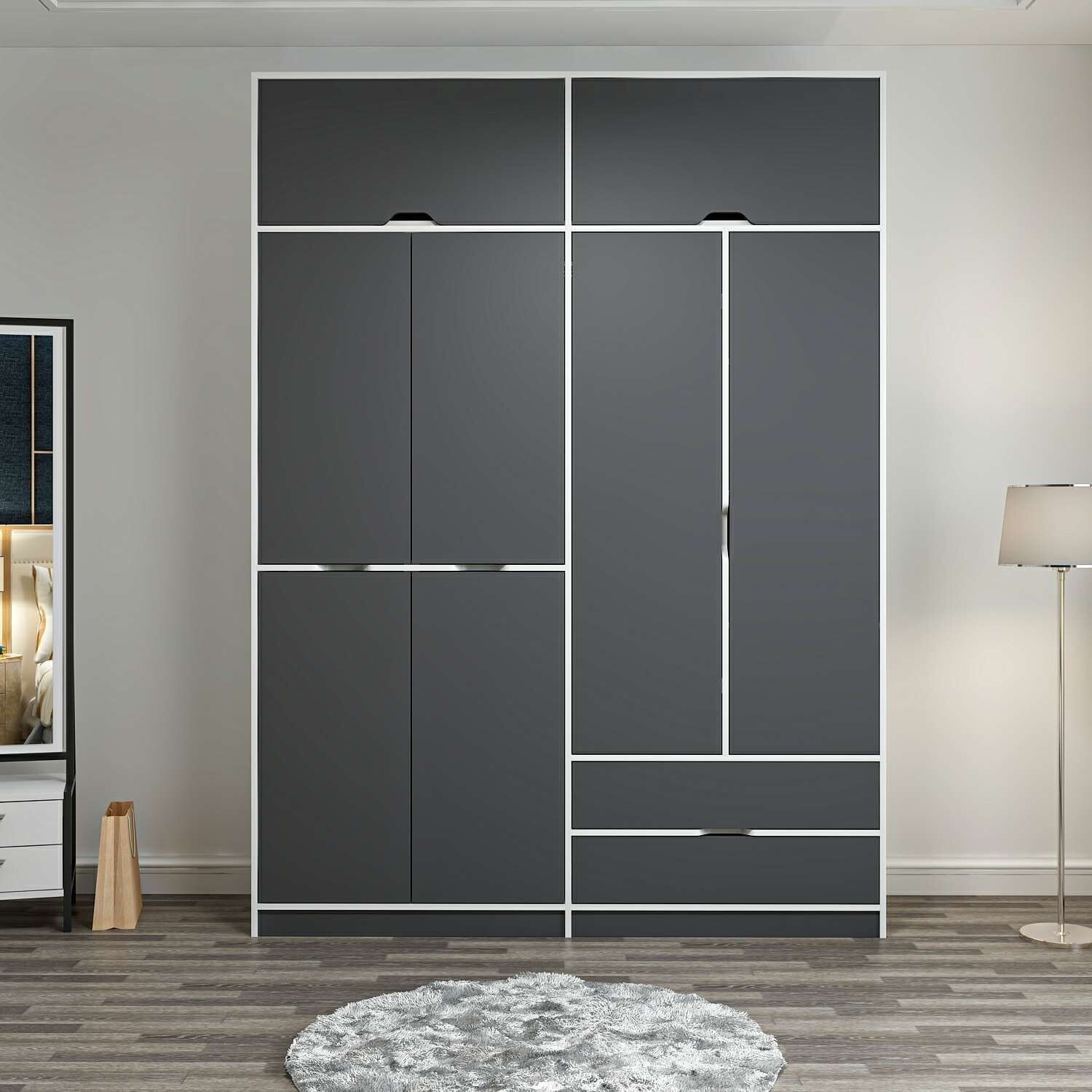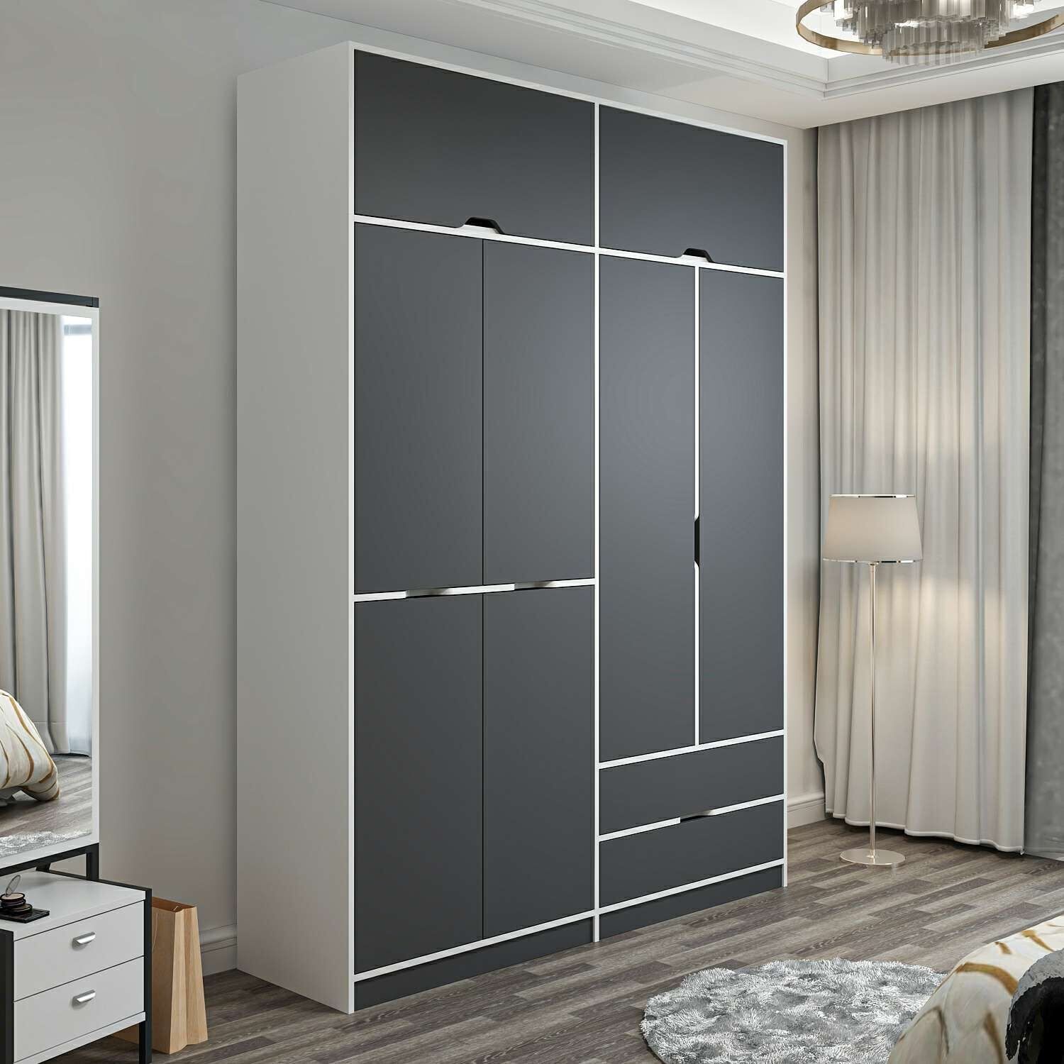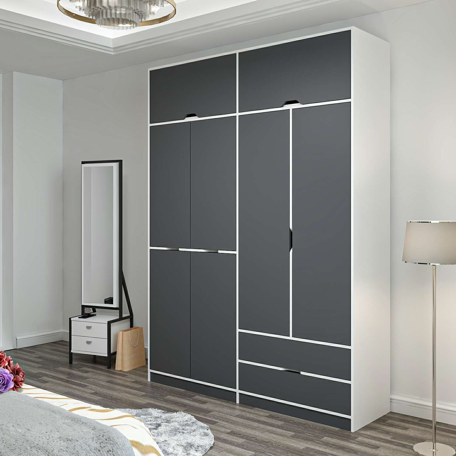 Elina 4 Kapaklı Dolap + Yüklük - Beyaz/Antrasit M.M.01.03.01.09248 Elina 4 Kapaklı Dolap + Yüklük - Beyaz/Antrasit