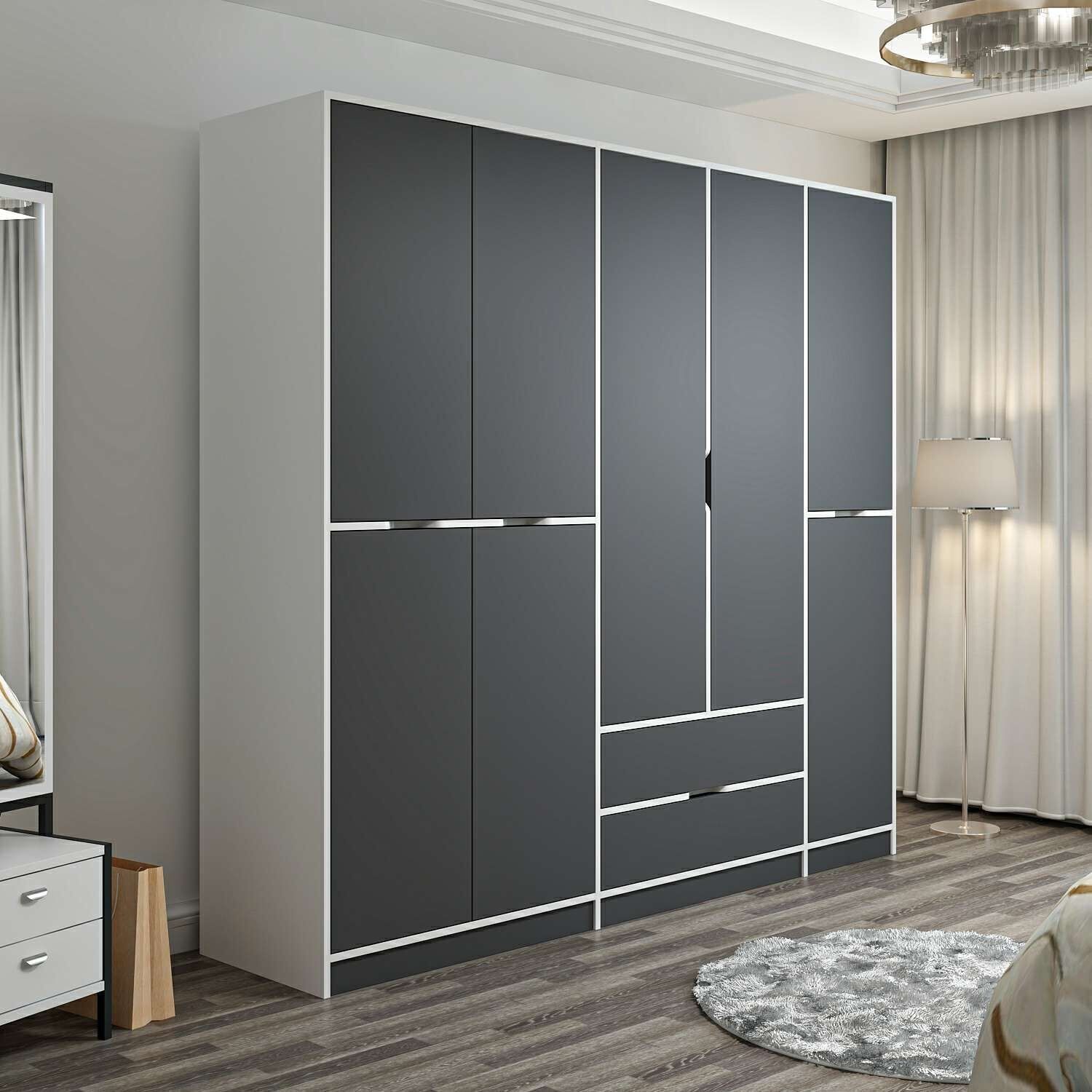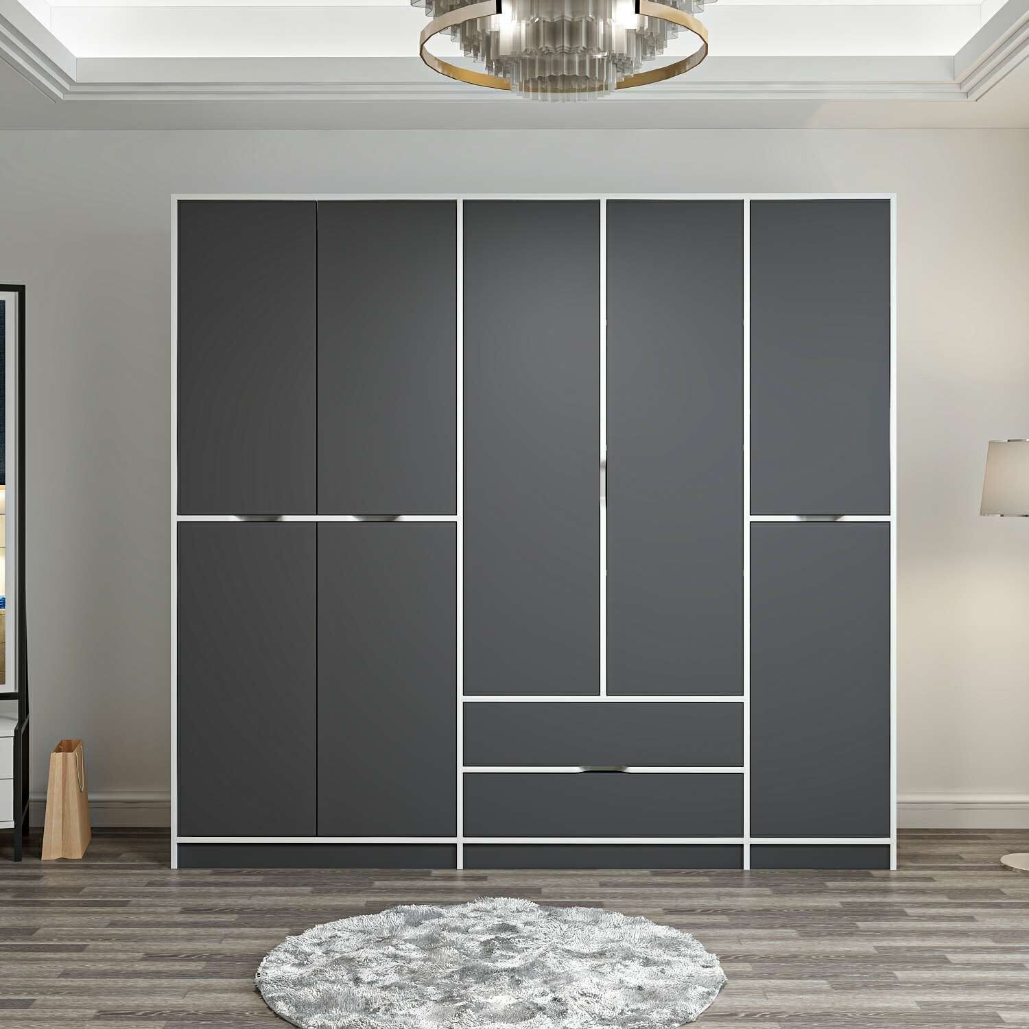 Elina 5 Kapaklı Dolap - Beyaz/Antrasit