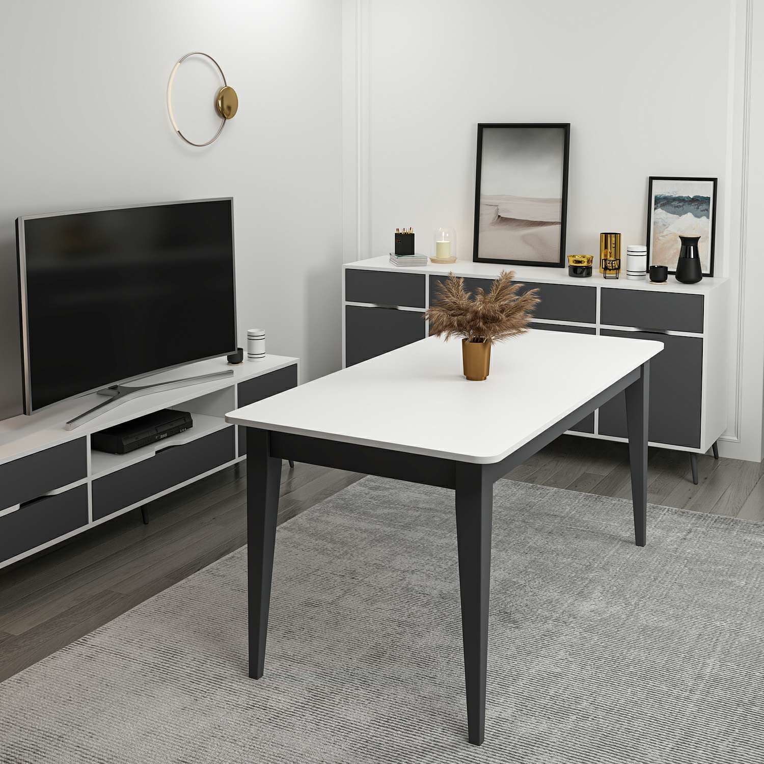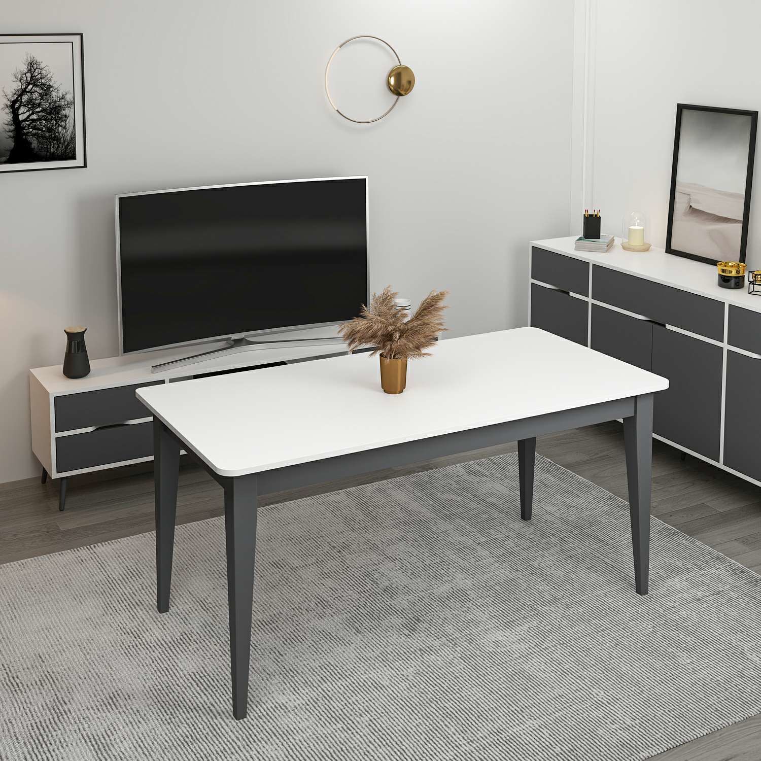 Elina Açılır Yemek Masası - Beyaz/Antrasit