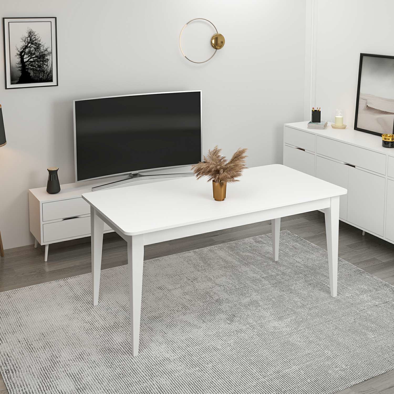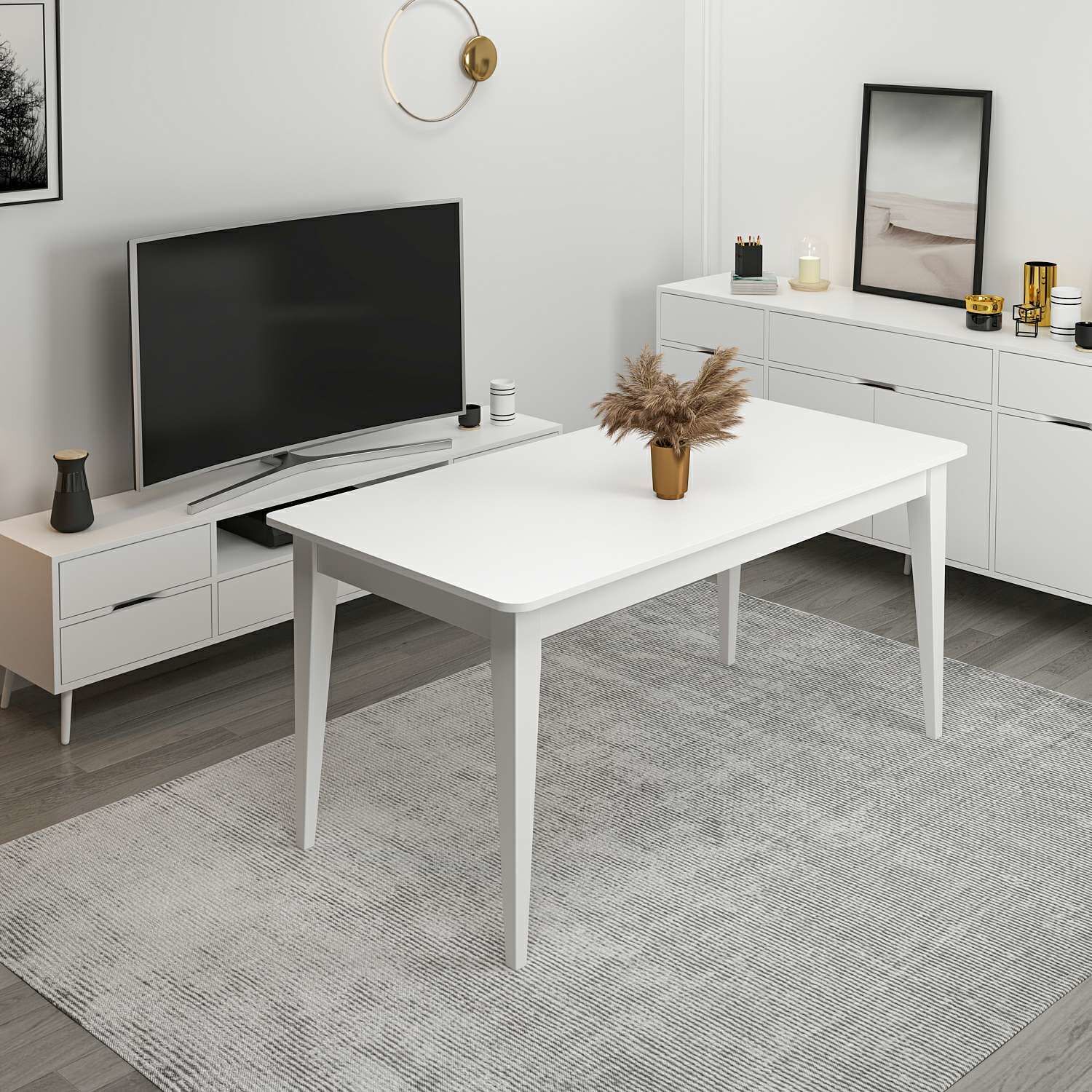 Elina Açılır Yemek Masası - Beyaz/Beyaz M.M.01.06.33.09735 Elina Açılır Yemek Masası - Beyaz/Beyaz