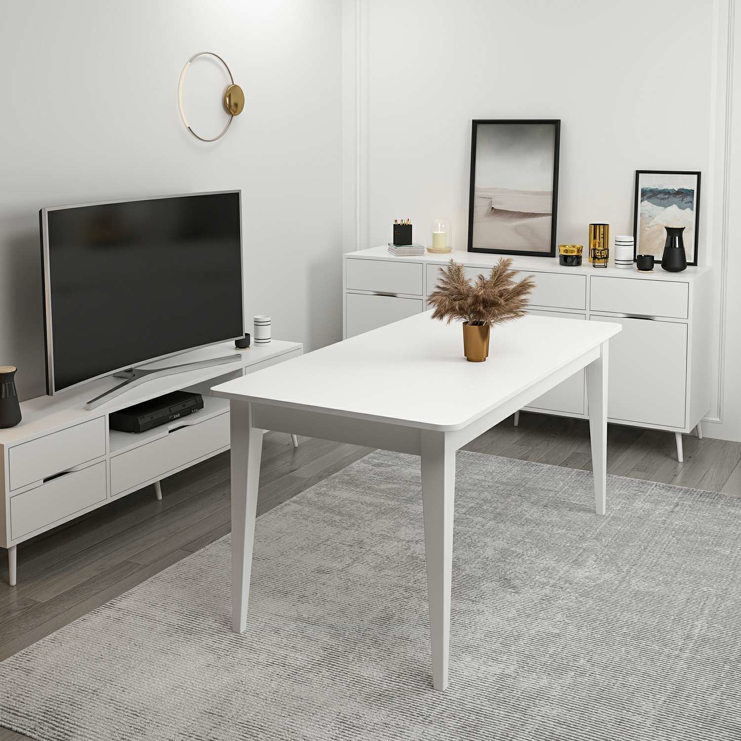 Elina Açılır Yemek Masası - Beyaz/Beyaz