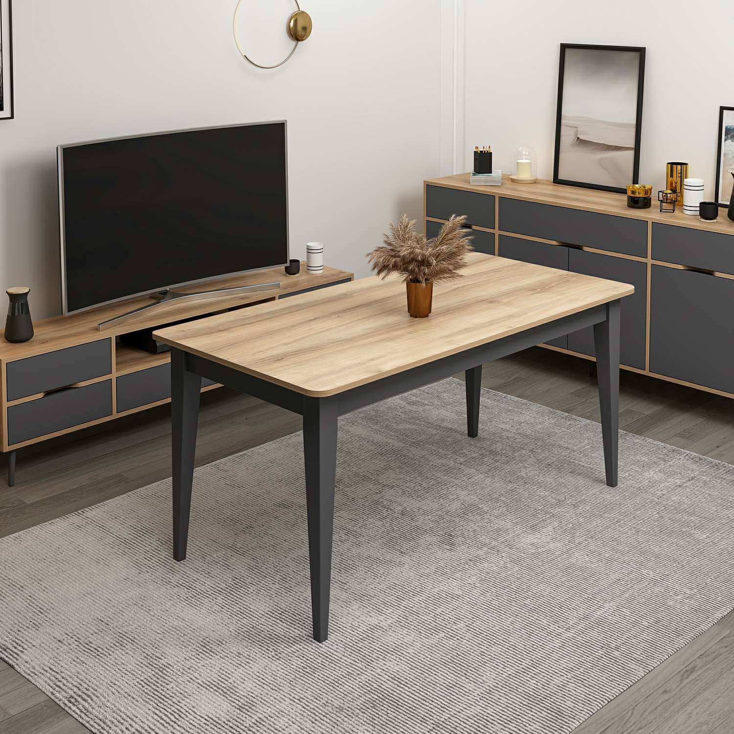 Elina Açılır Yemek Masası - Dore/Antrasit