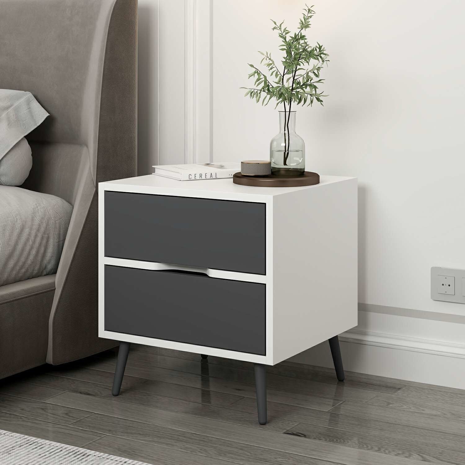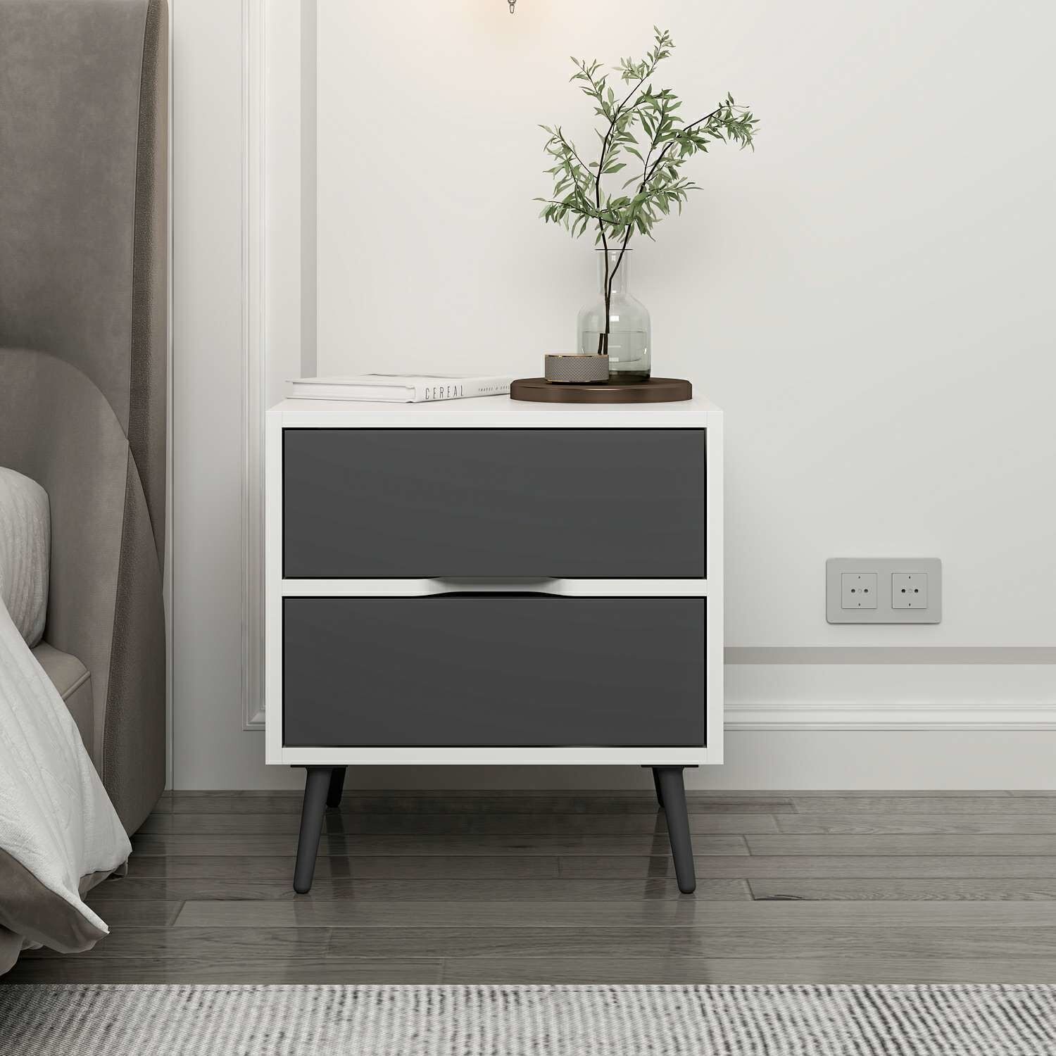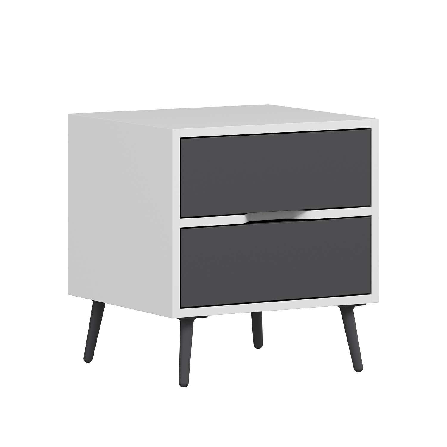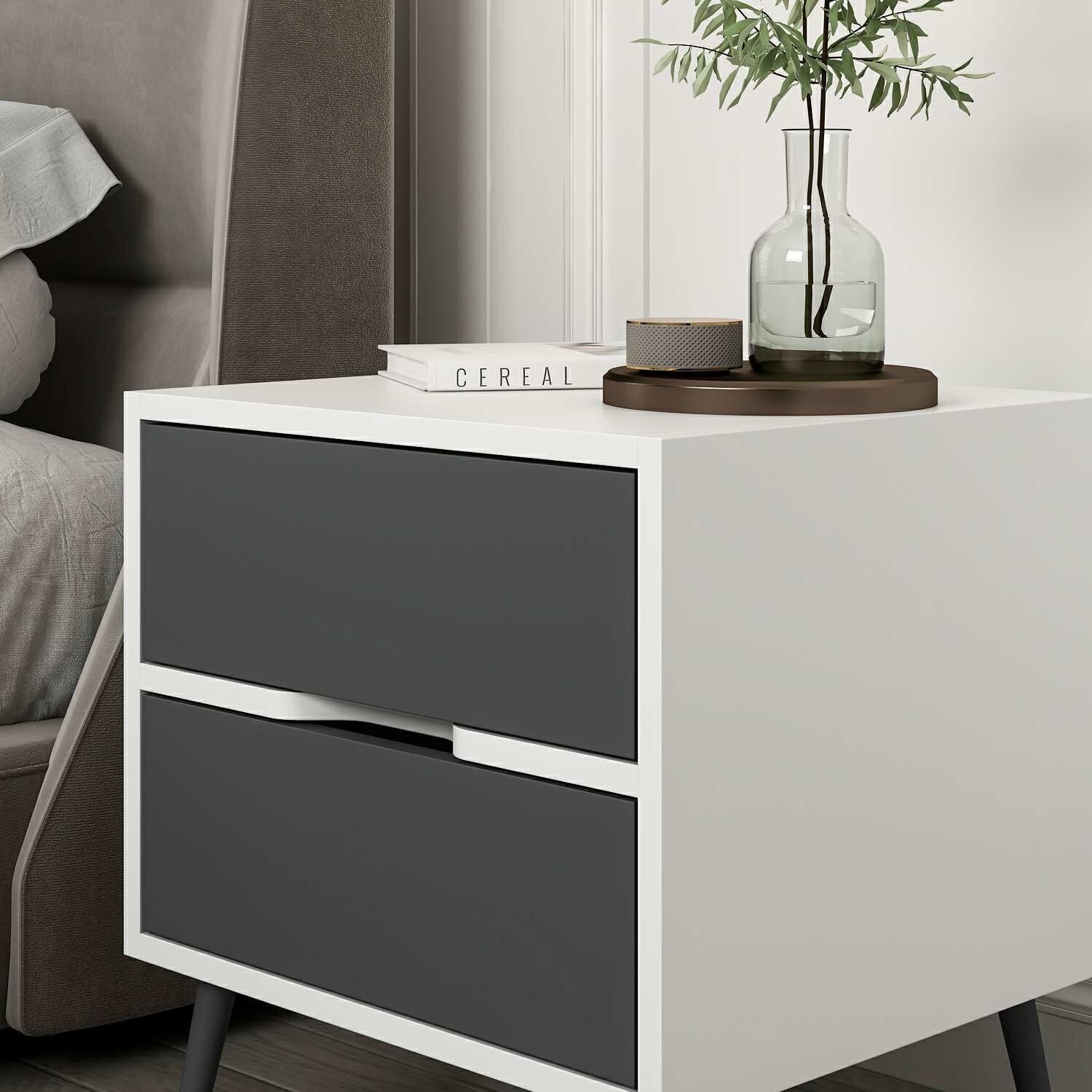 Elina Ayaklı 2 Çekmeceli Komodin - Beyaz/Antrasit