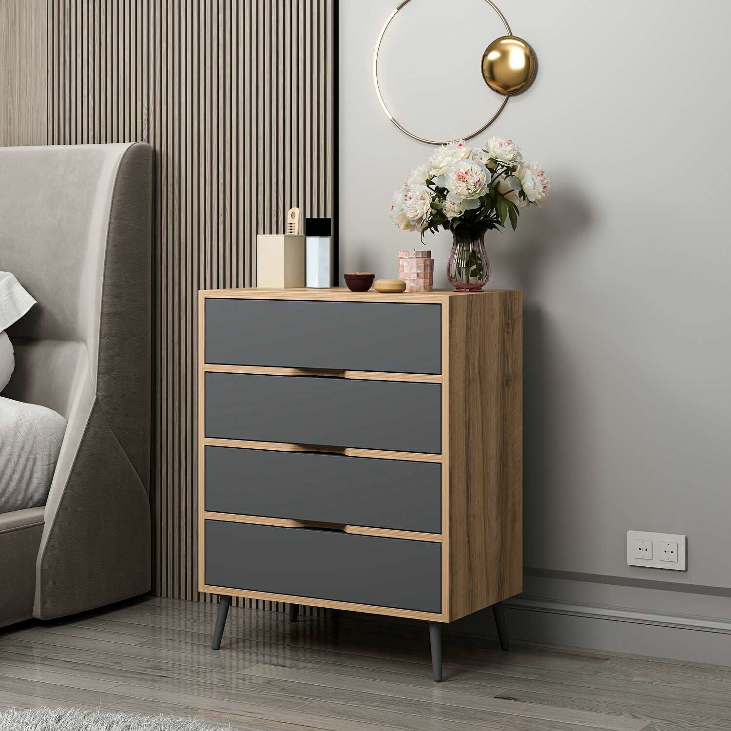 Elina Ayaklı 4 Çekmeceli Şifonyer - Dore/Antrasit