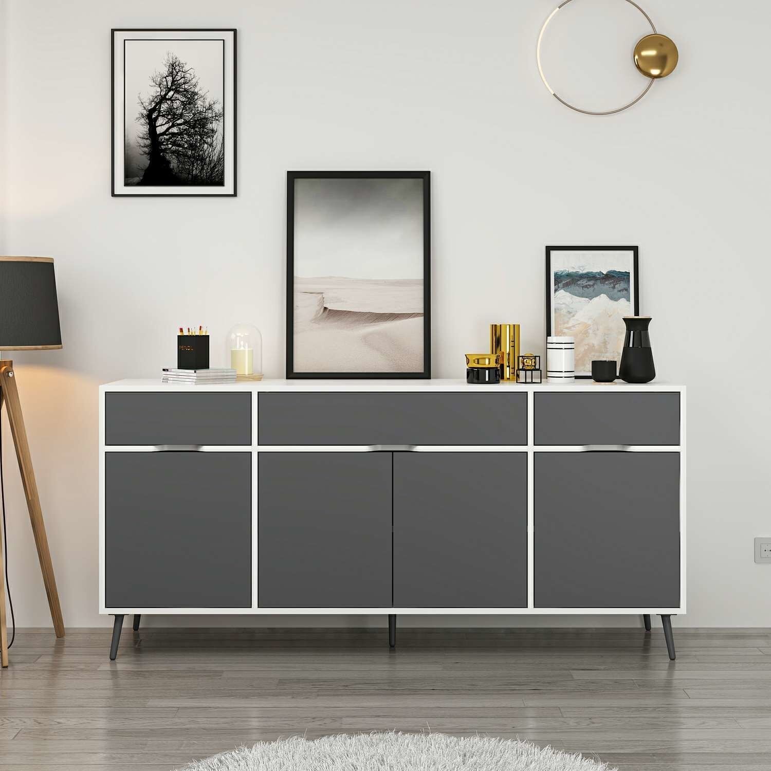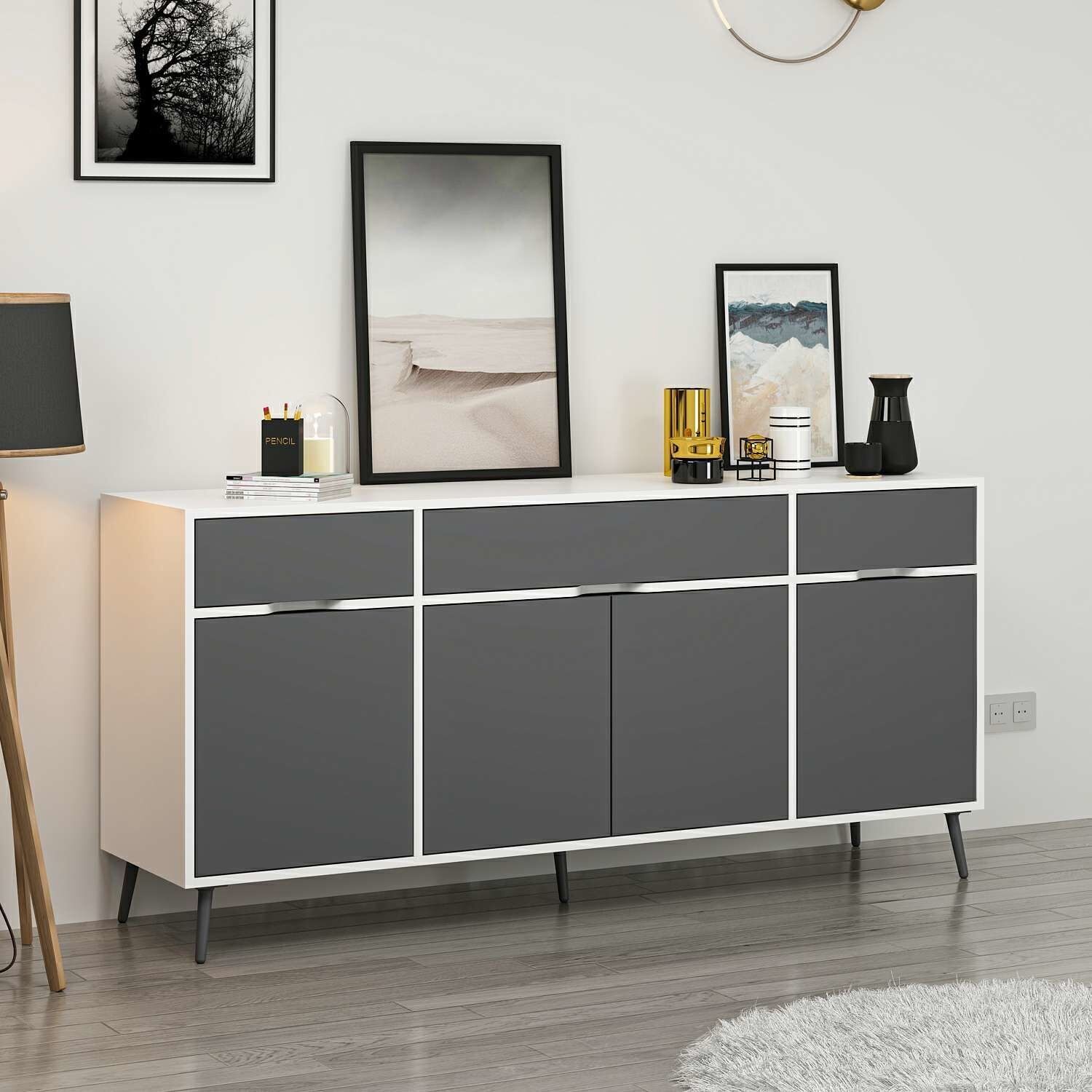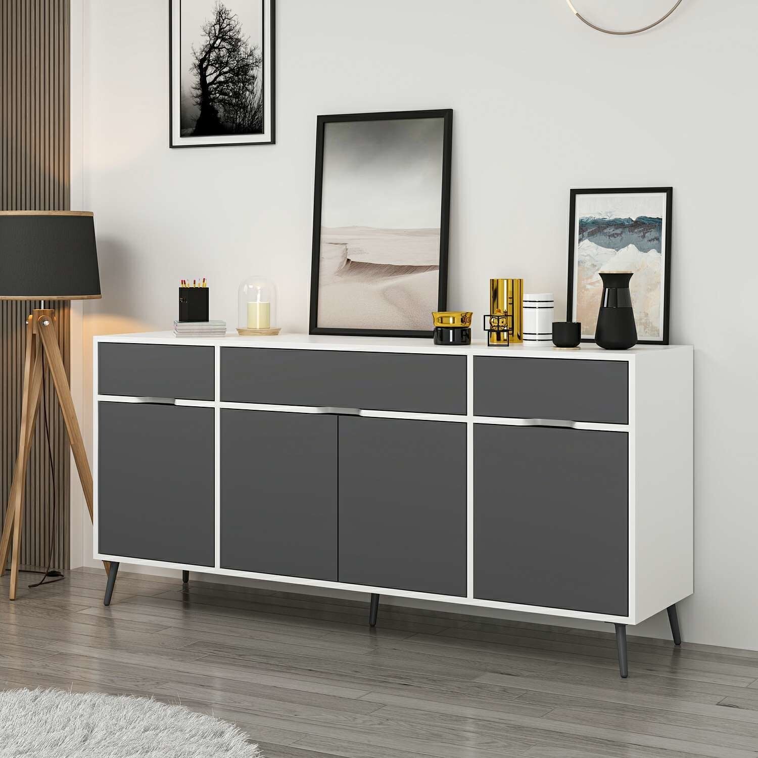 Elina Ayaklı Konsol - Beyaz/Antrasit