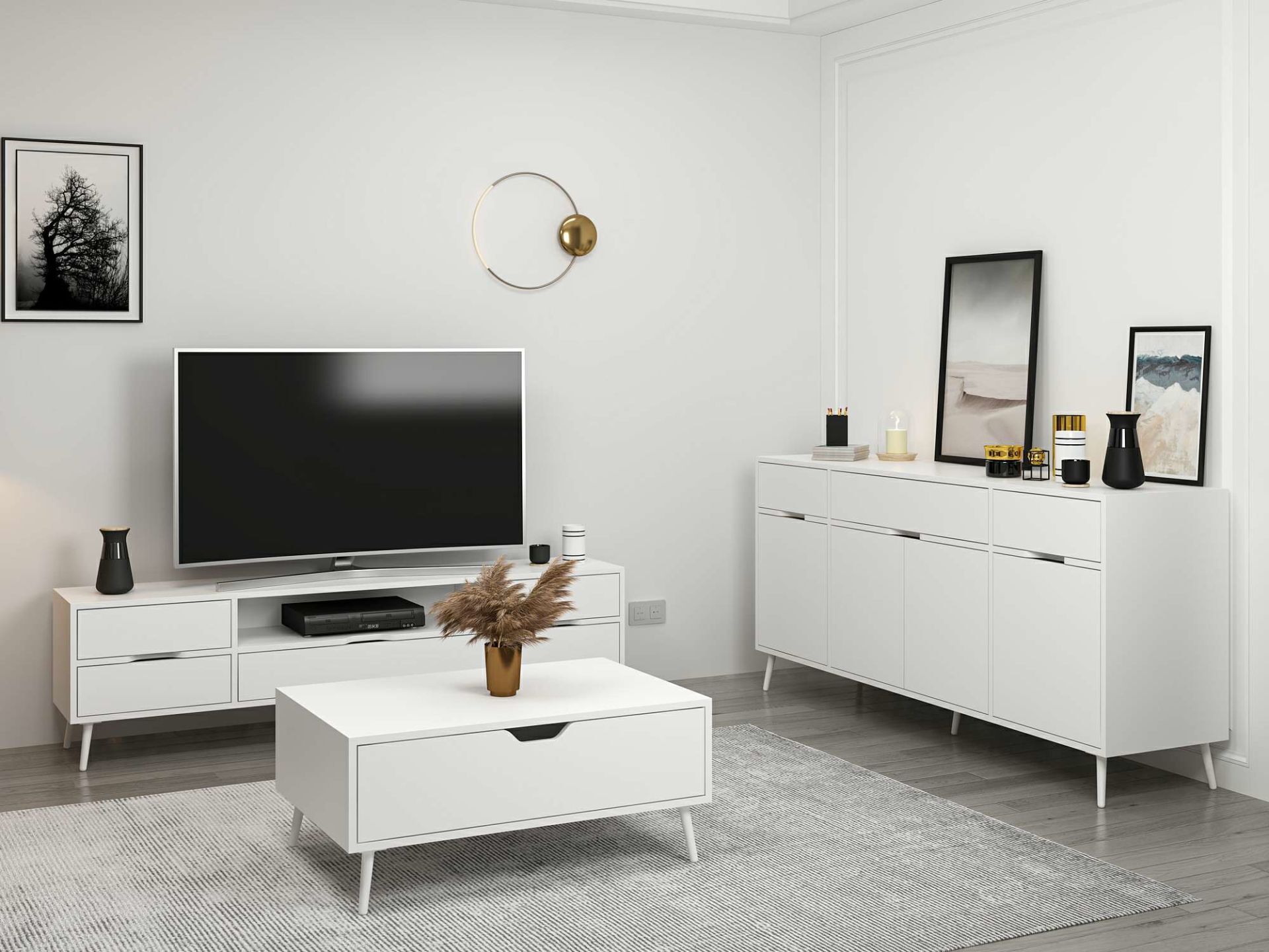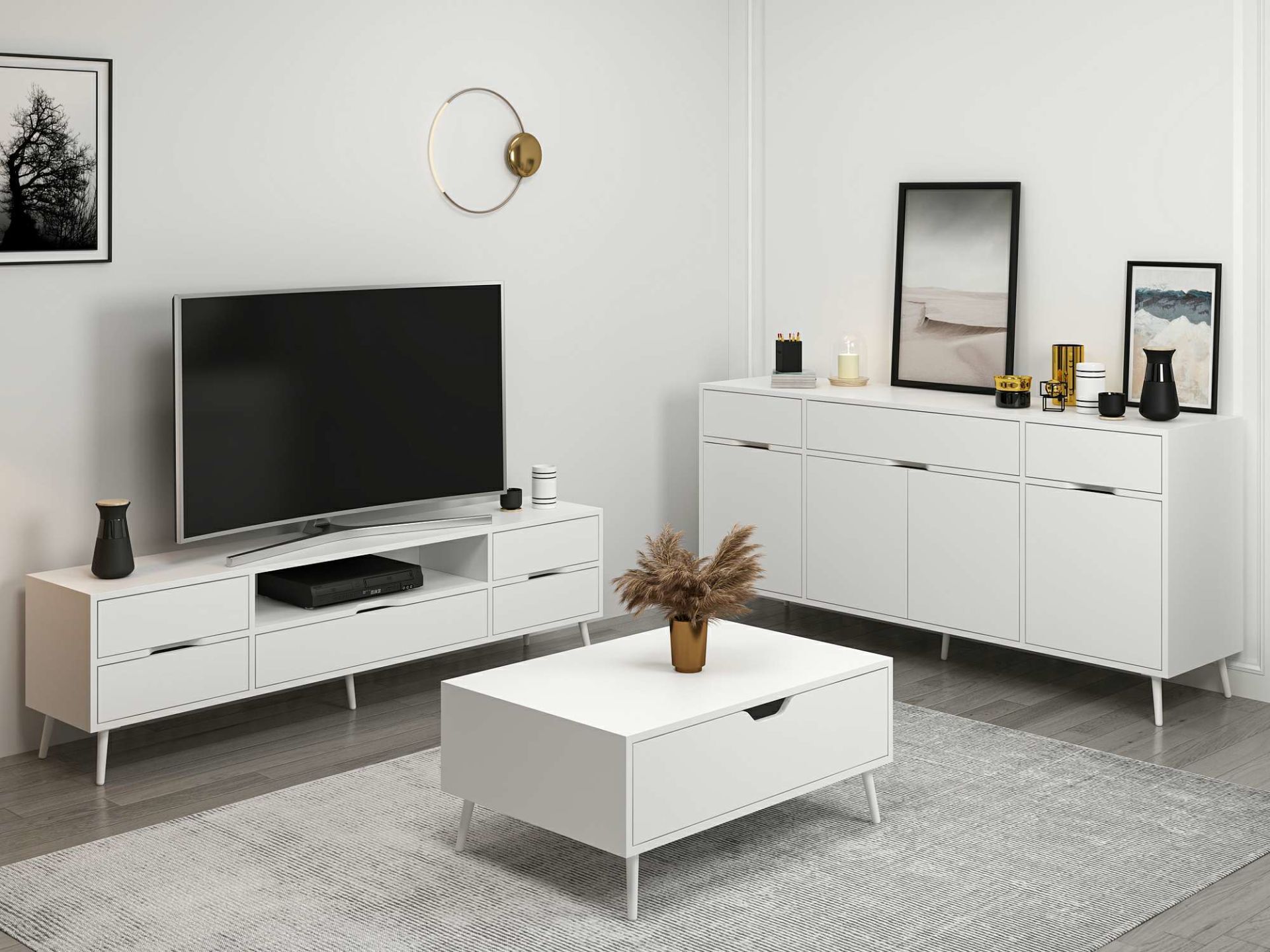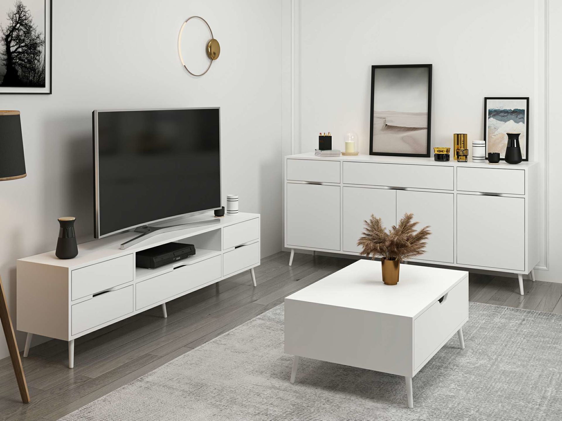 Elina Ayaklı Oturma Odası Set1 - Beyaz/Beyaz