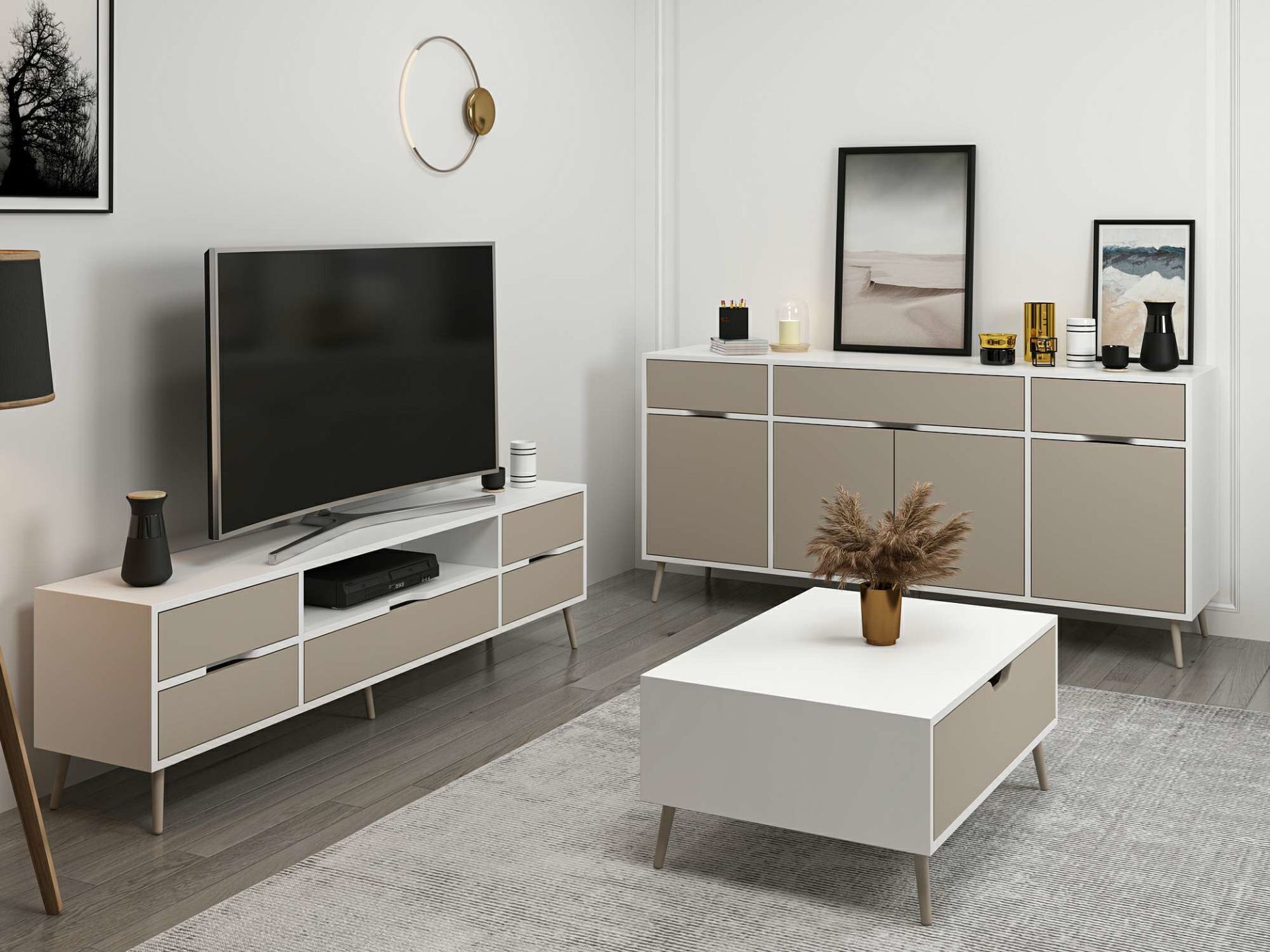 Elina Ayaklı Oturma Odası Set1 - Beyaz/Kumtaşı M.M.01.01.35.09745 Elina Ayaklı Oturma Odası Set1 - Beyaz/Kumtaşı