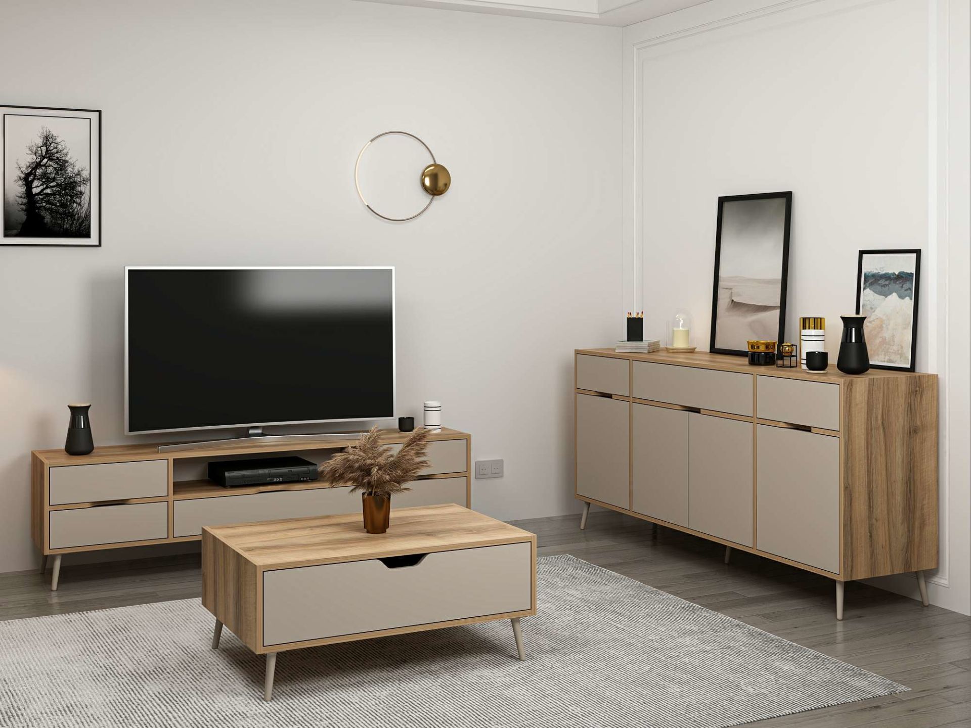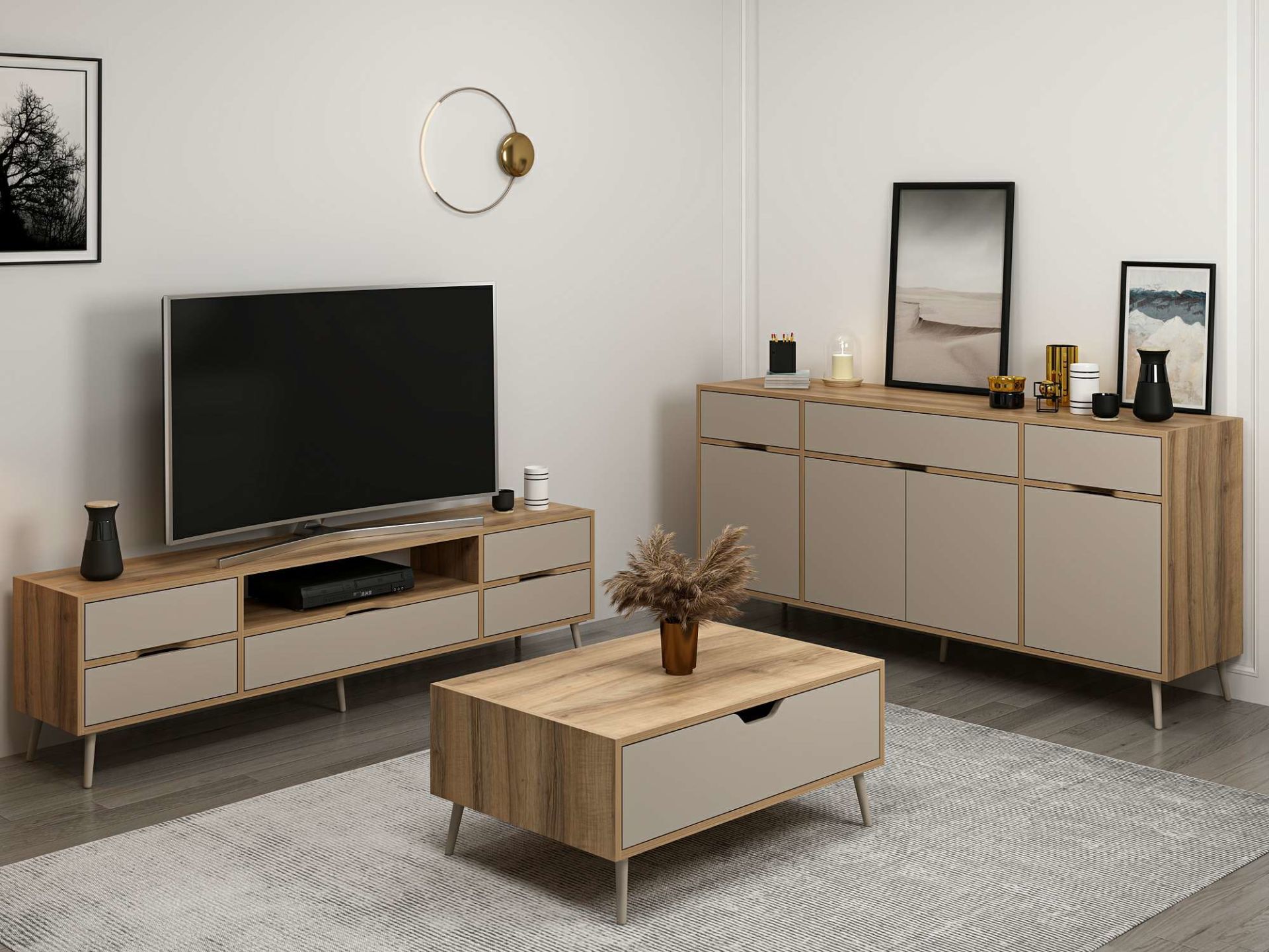 Elina Ayaklı Oturma Odası Set1 - Dore/Kumtaşı