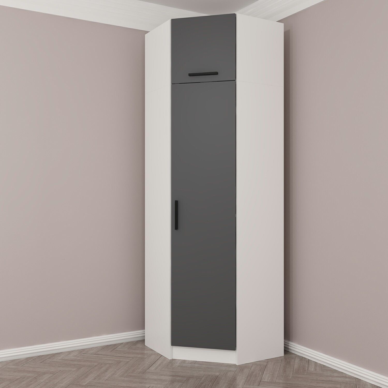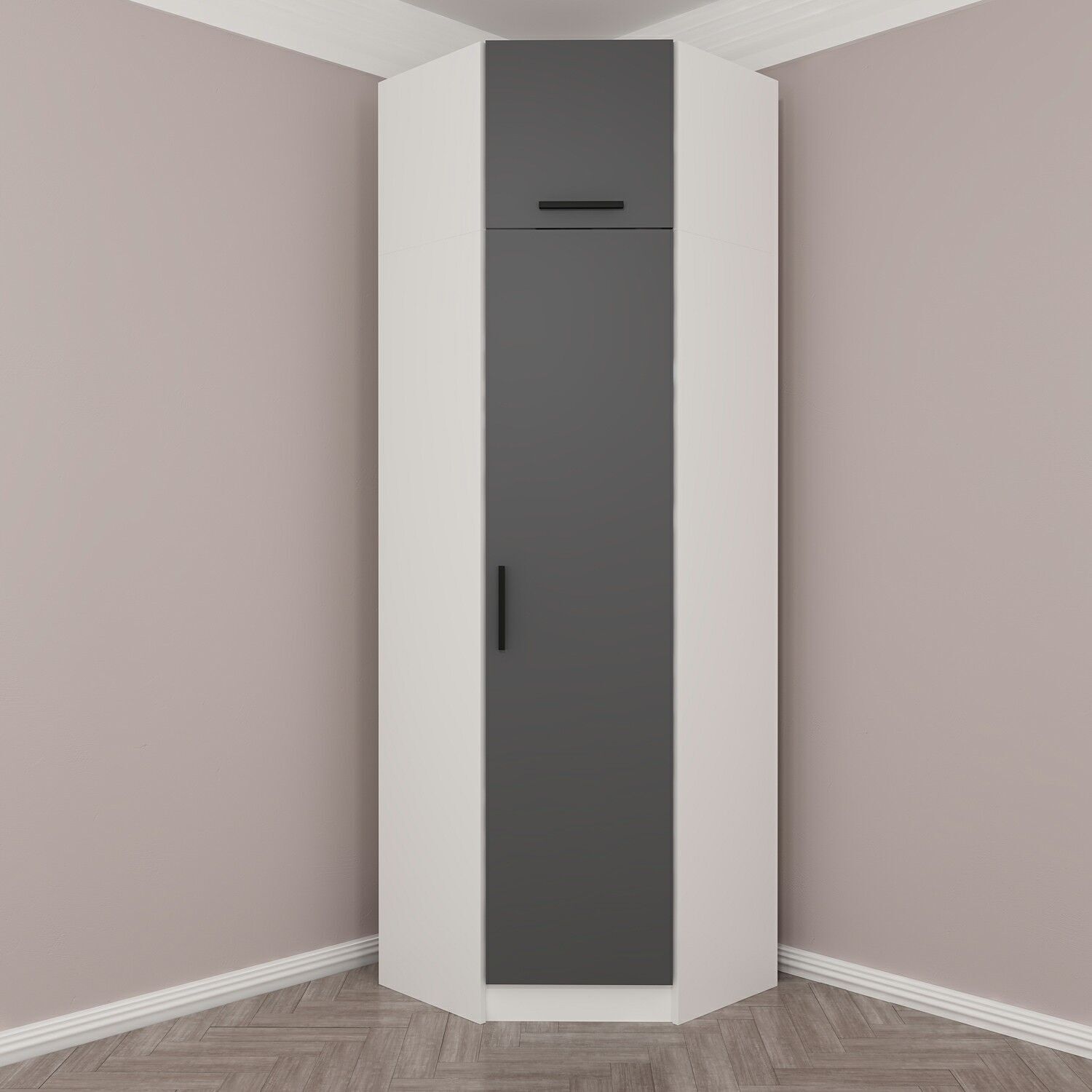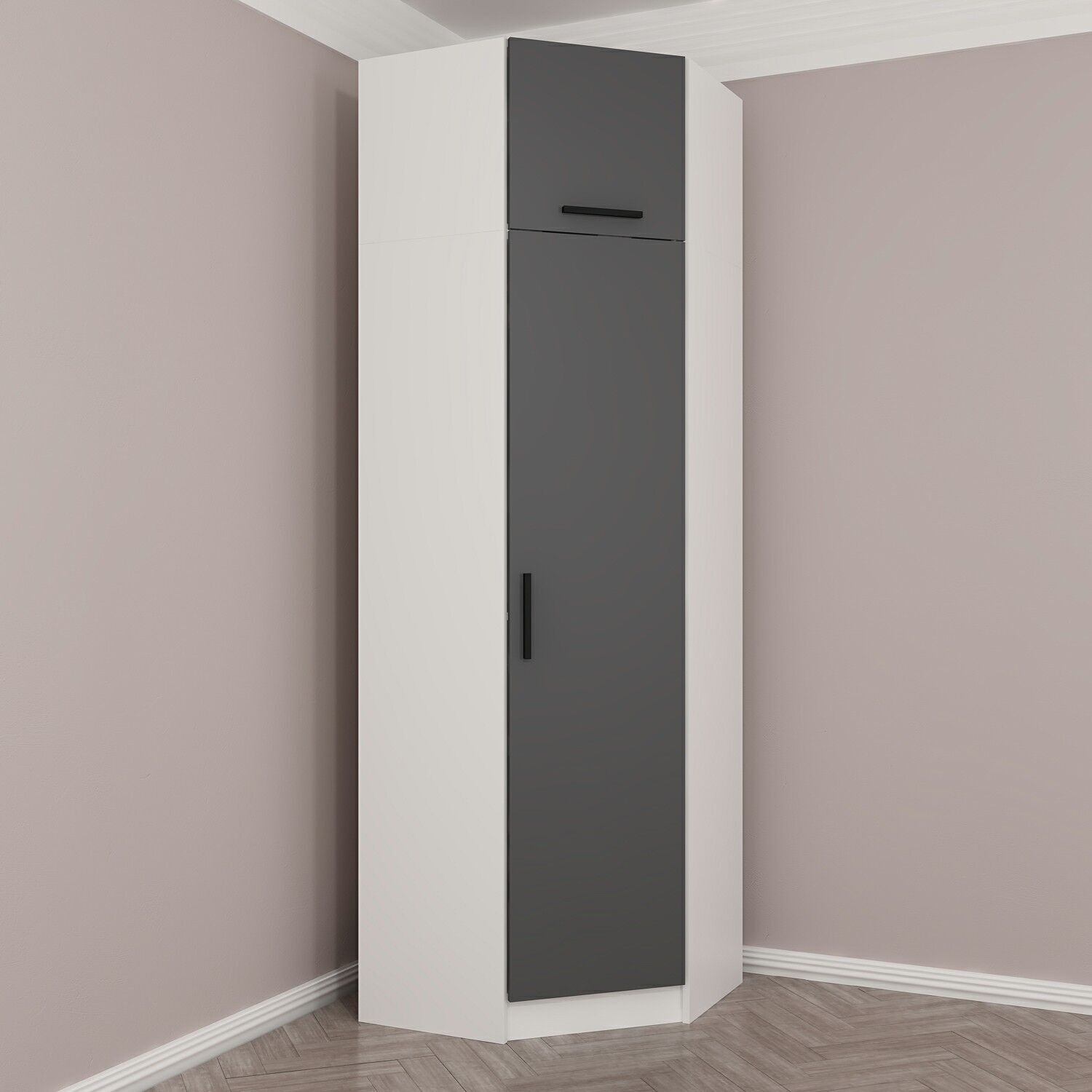 Kale 1 Kapaklı Köşe Dolap + Yüklük Beyaz Antrasit