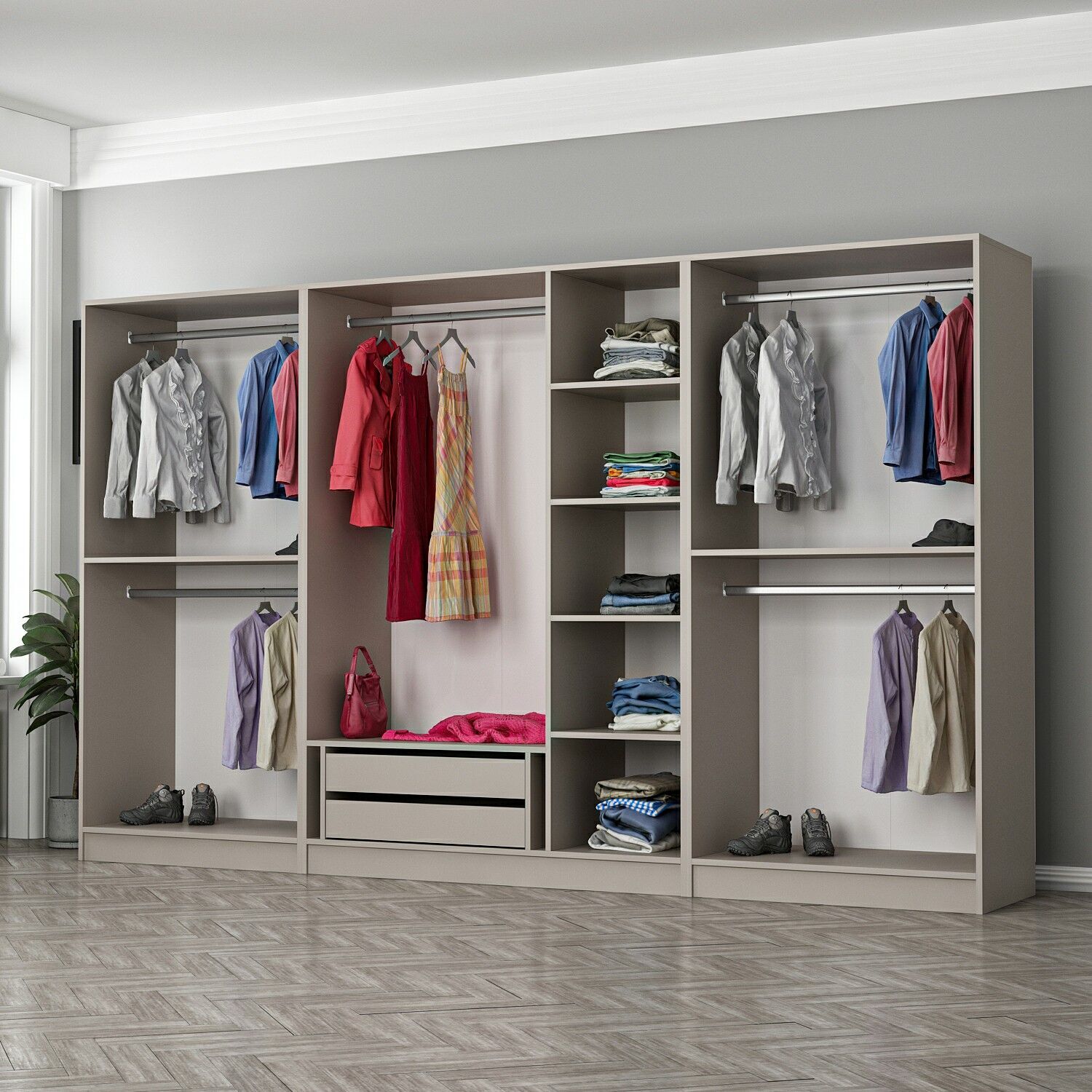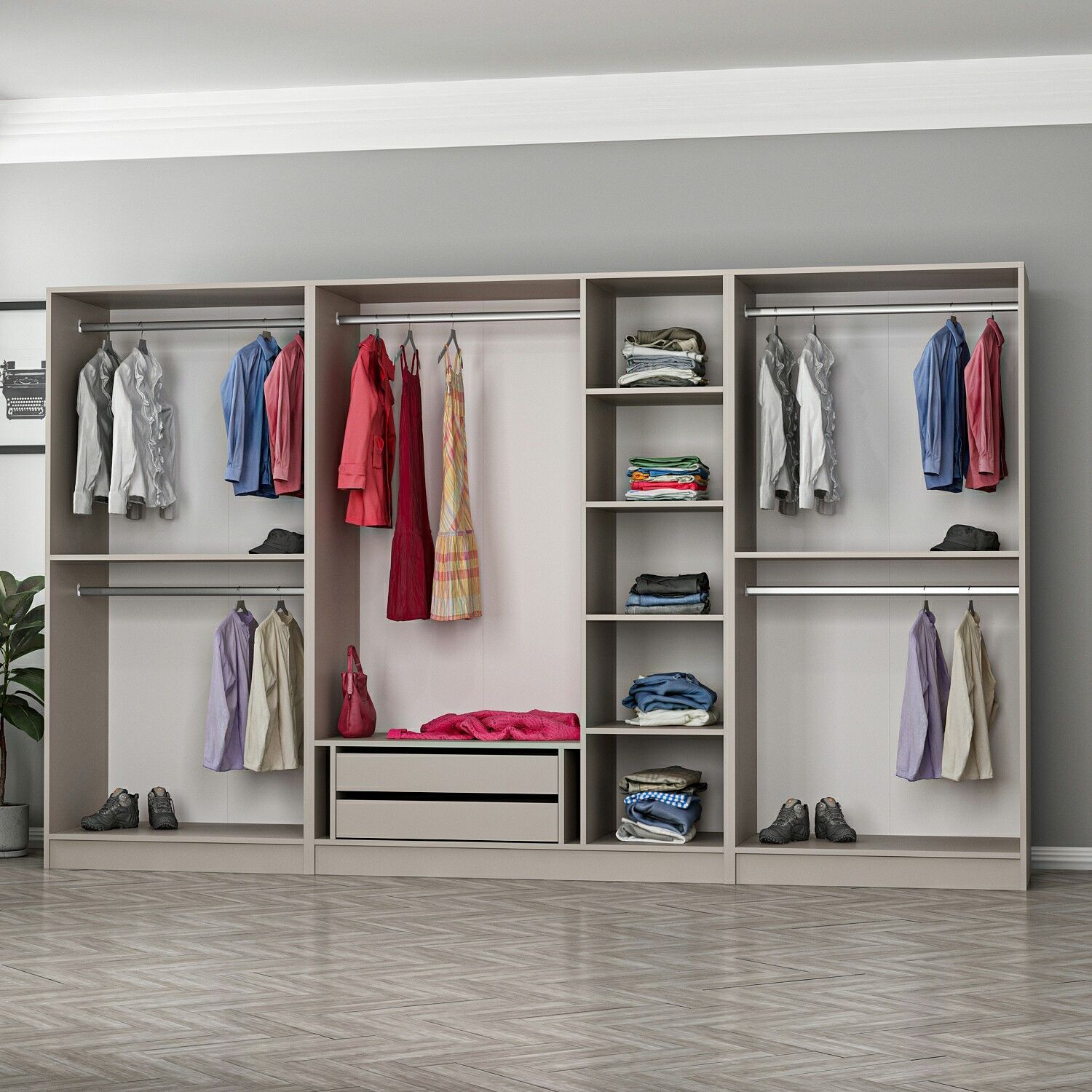 Kale 7 Bölmeli 2 Çekmeceli Giyinme Dolabı Kumtaşı