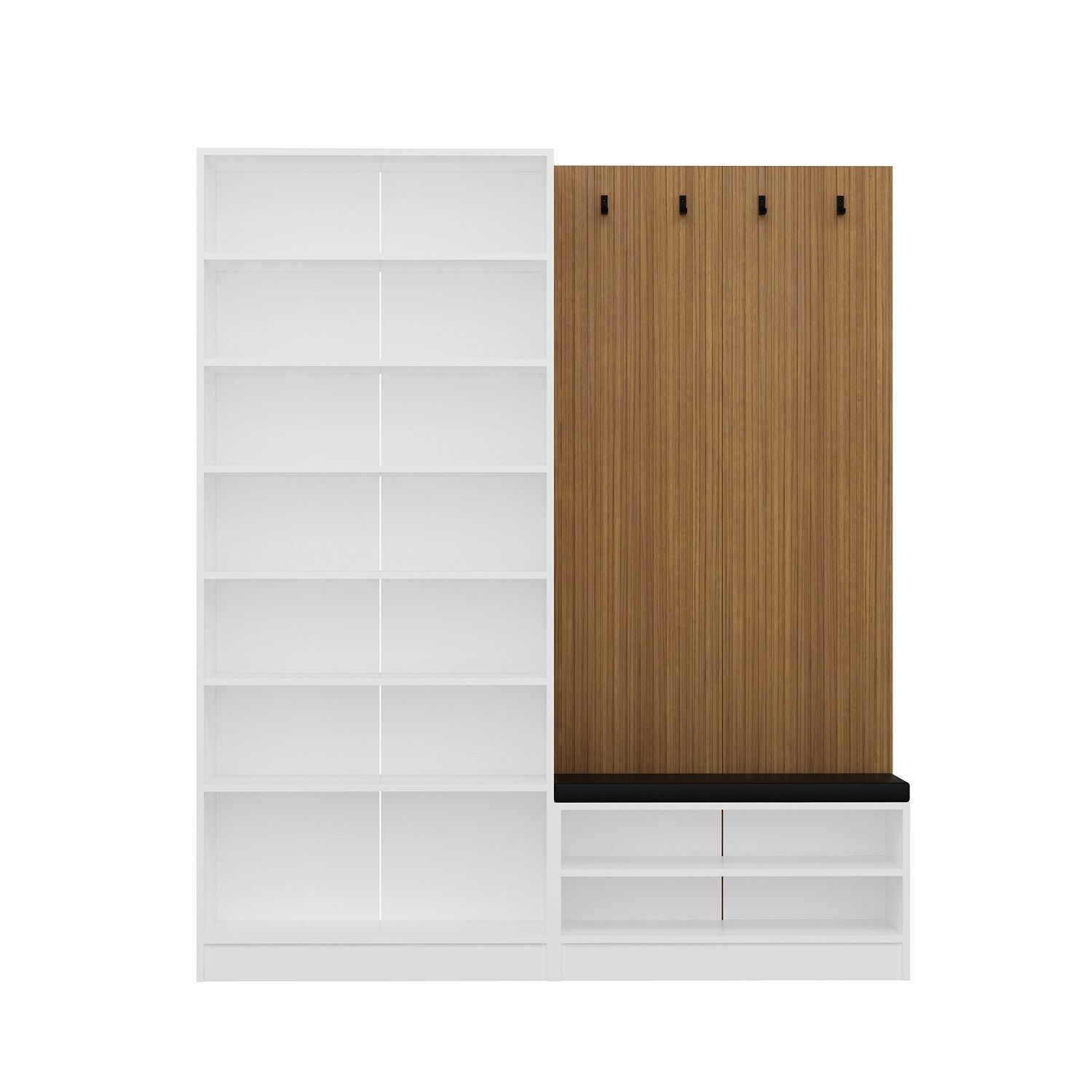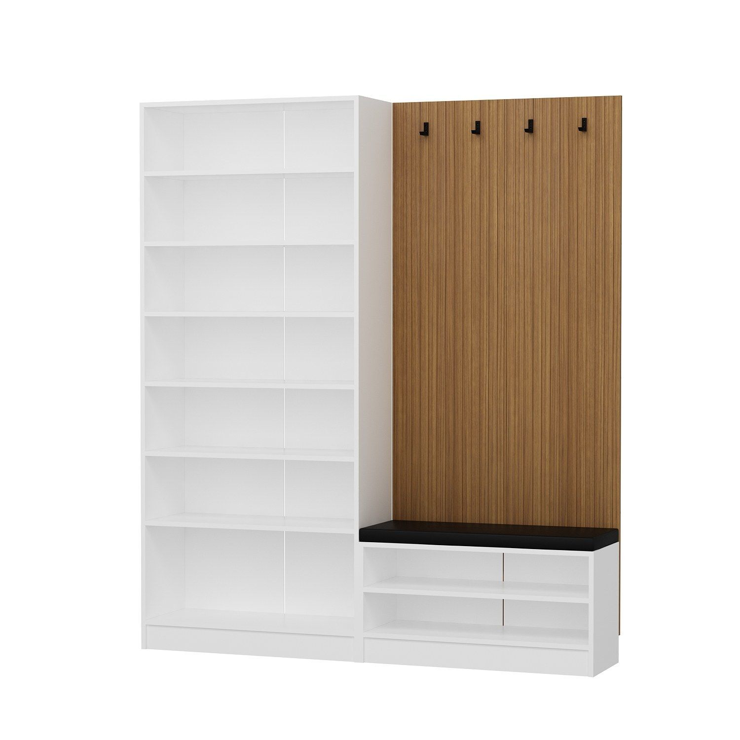 Minar Kale Dekor Panel 2 Bölme Raf Portmanto + Ayakkabılık Minderli Beyaz 2 Kapaksız