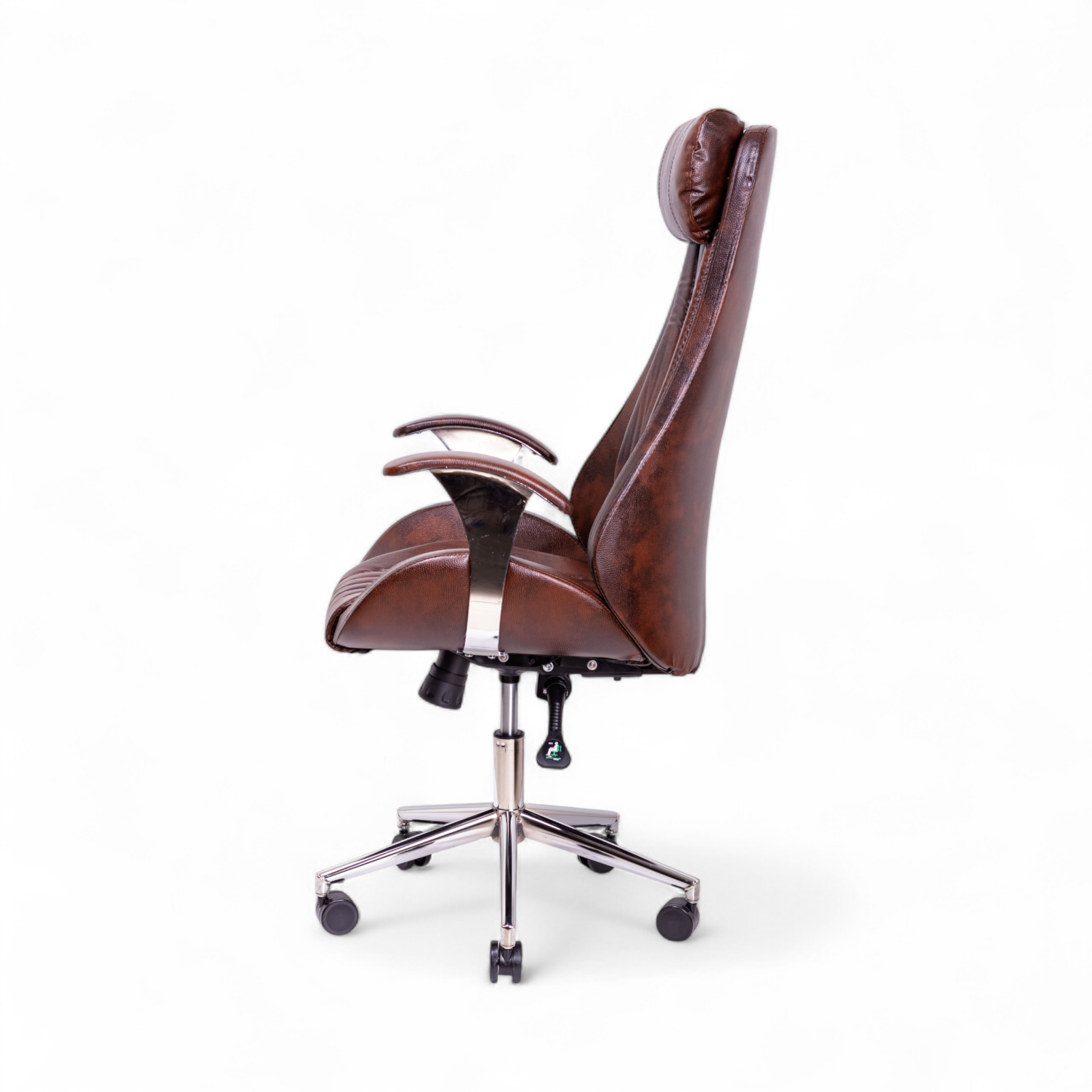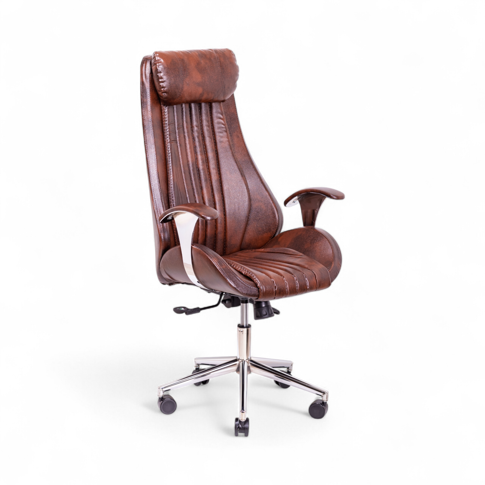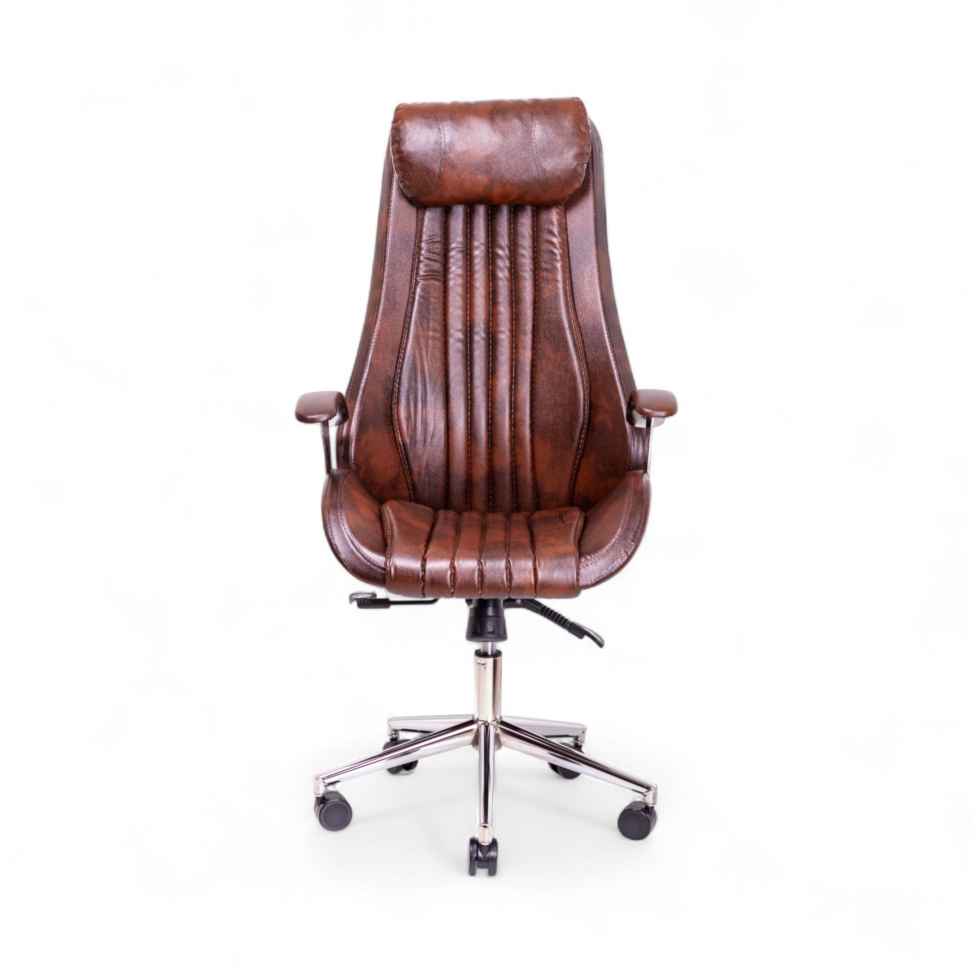 KPT Yönetici Koltuğu, klasik şıklığı ve konforu bir arada sunan yüksek segment bir ofis koltuğudur. Antik kahverengi tonundaki suni deri döşemesi, yumuşak başlık yapısı ve krom detaylarıyla ofisinizde güçlü ve prestijli bir duruş sergiler.