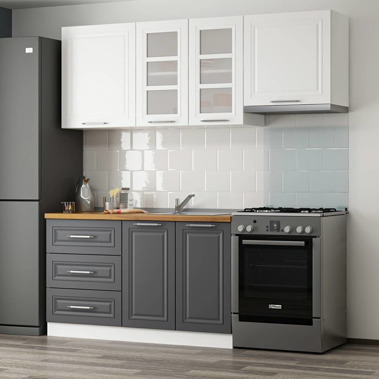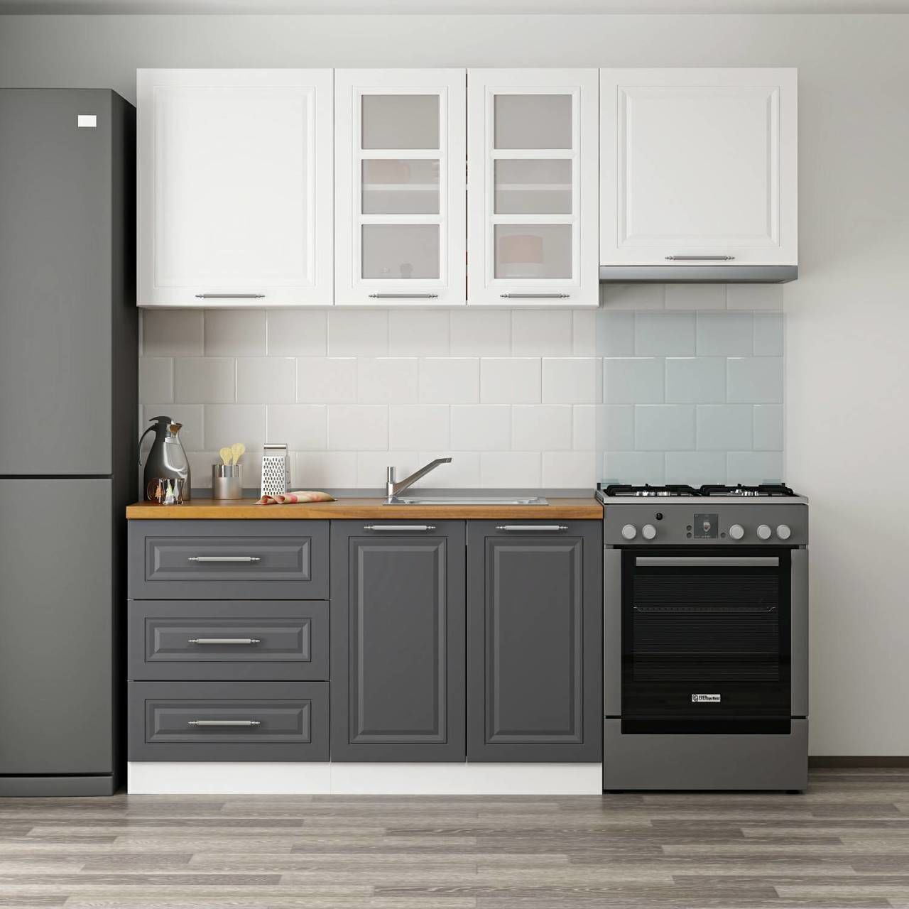 MİNAR 200 CM MEBRAN C MUTFAK DOLABI BEYAZ ANTRASİT 200-MCBA2