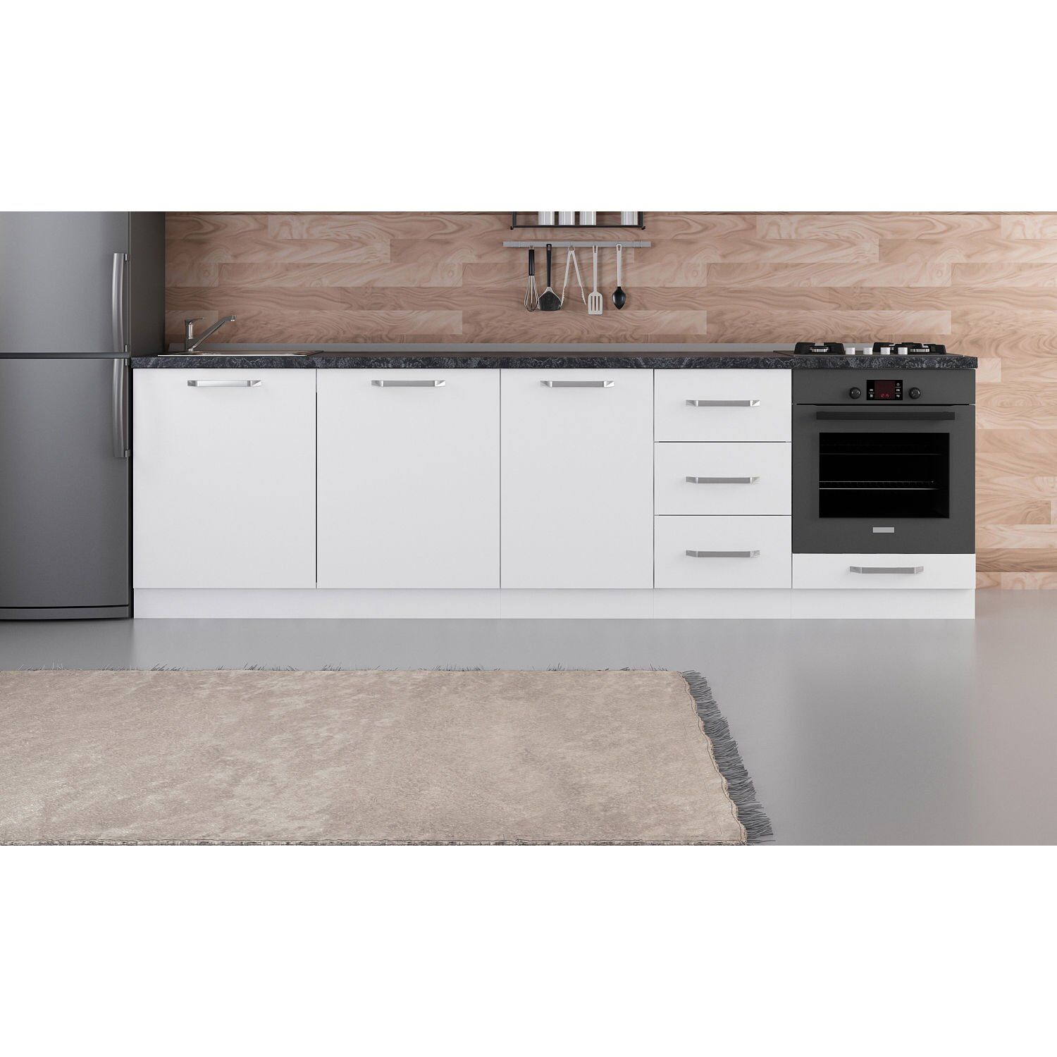 Alt modüllerin yüksekliğine 3 cm tezgah kalınlığı eklenmelidir!
