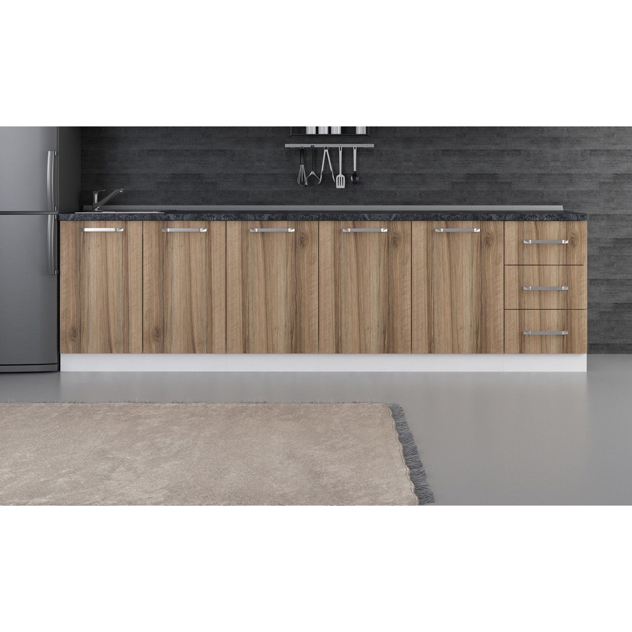 Alt modüllerin yüksekliğine 3 cm tezgah kalınlığı eklenmelidir!