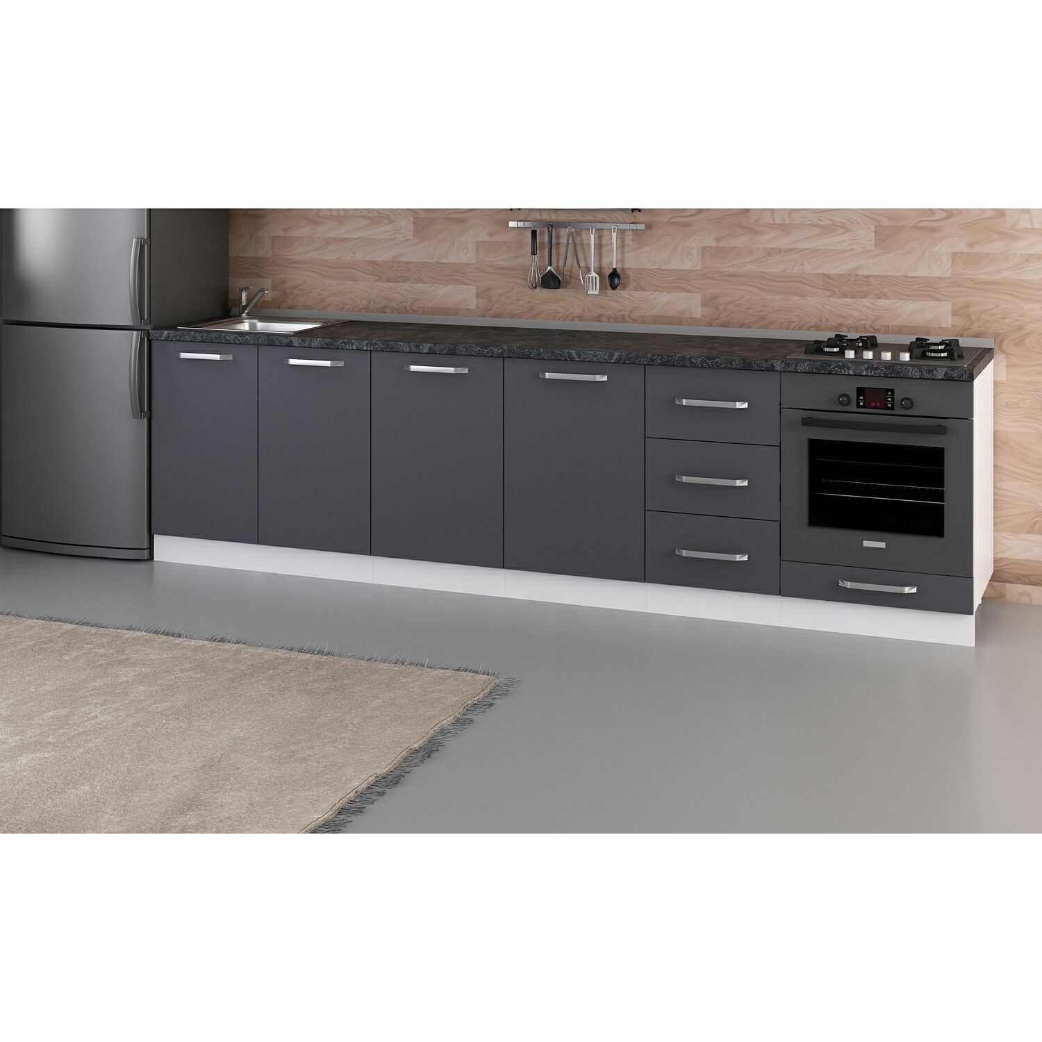 Alt modüllerin yüksekliğine 3 cm tezgah kalınlığı eklenmelidir!