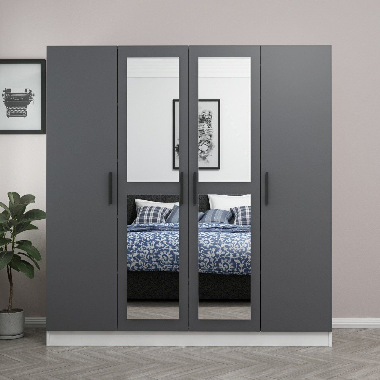 Minar Kale 4 Kapaklı 2 Aynalı 2 Çekmeceli Dolap Beyaz Antrasit
