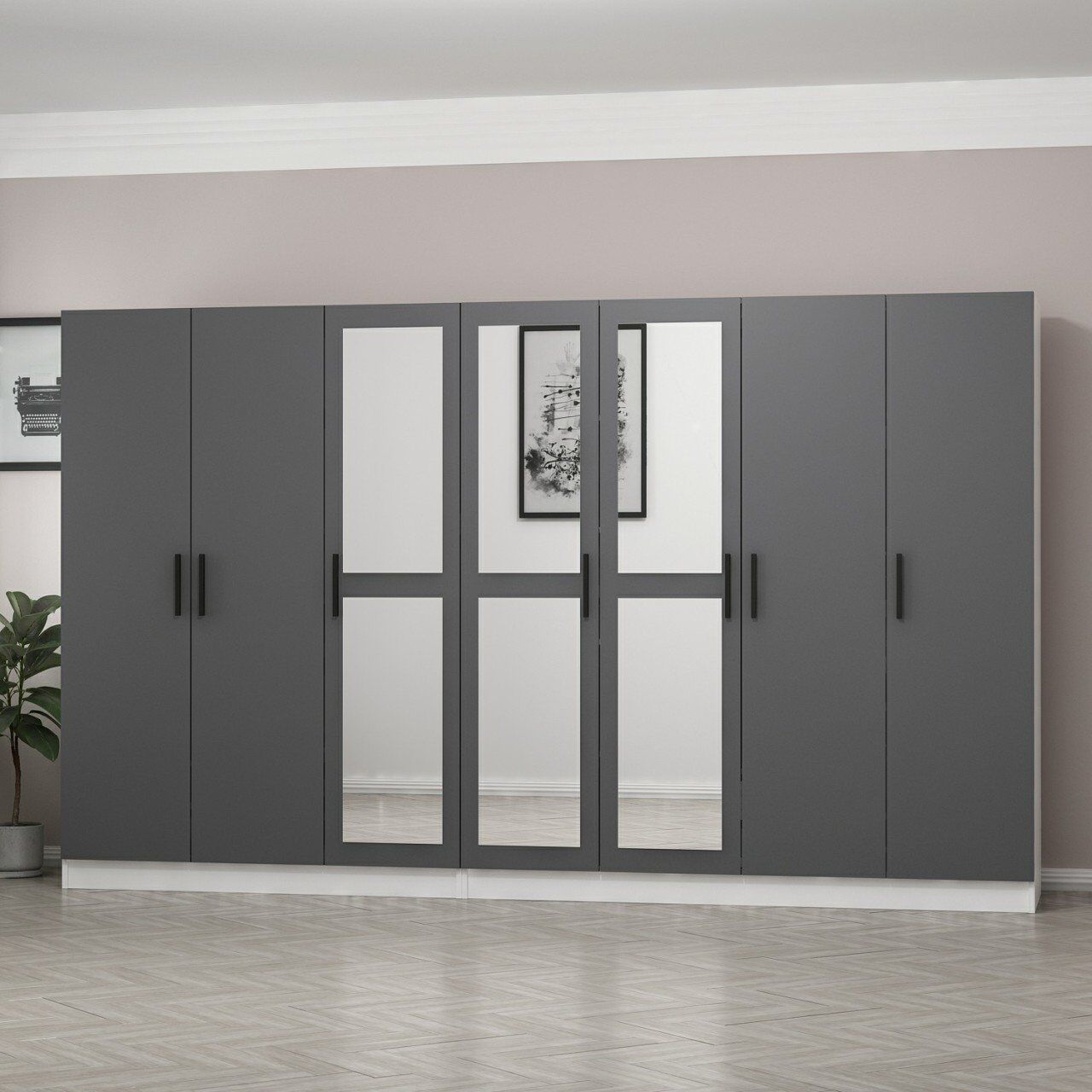 Minar Kale 7 Kapaklı 3 Aynalı 4 Çekmeceli Dolap Beyaz Antrasit M.M.01.03.48.04966V Minar Kale 7 Kapaklı 3 Aynalı 4 Çekmeceli Dolap Beyaz Antrasit