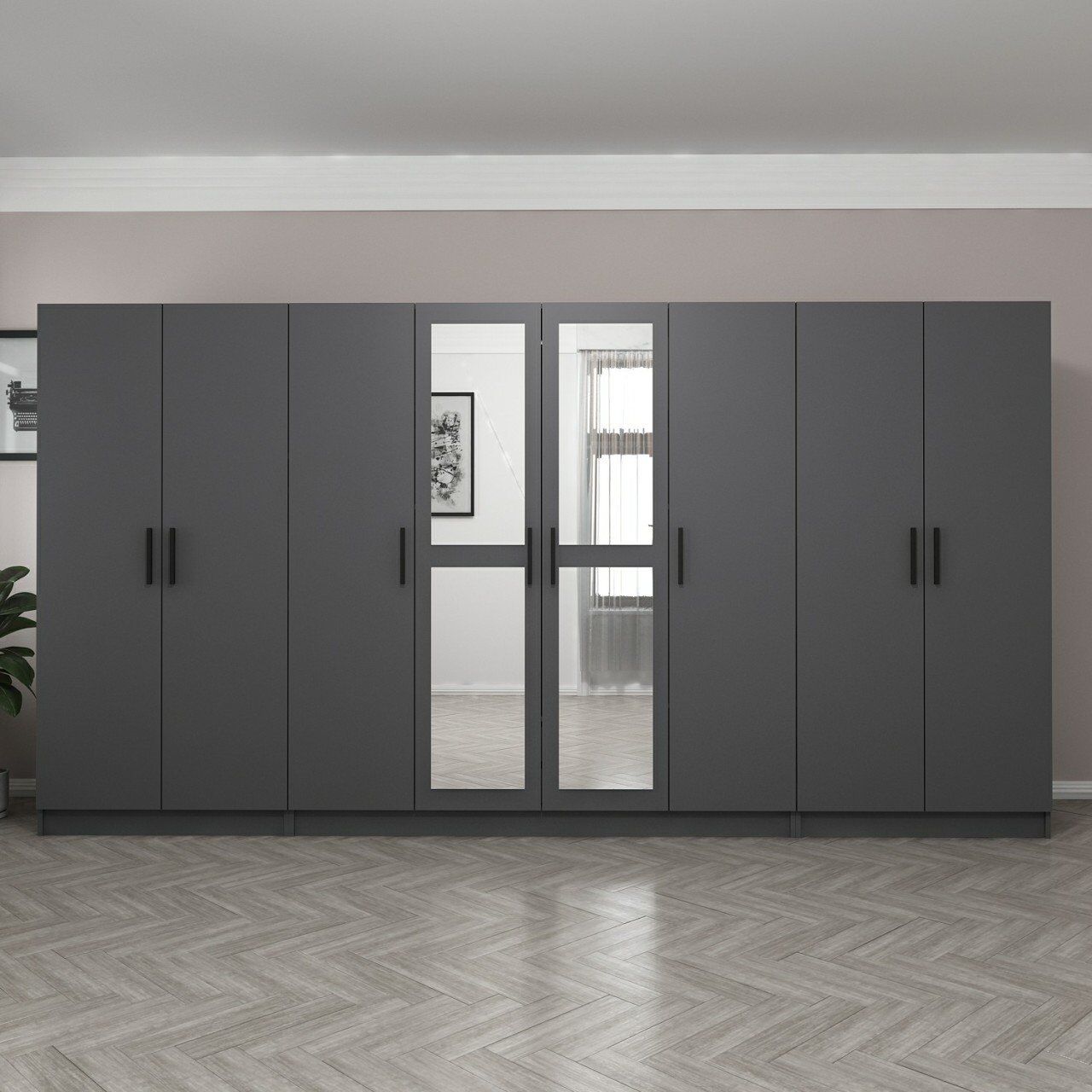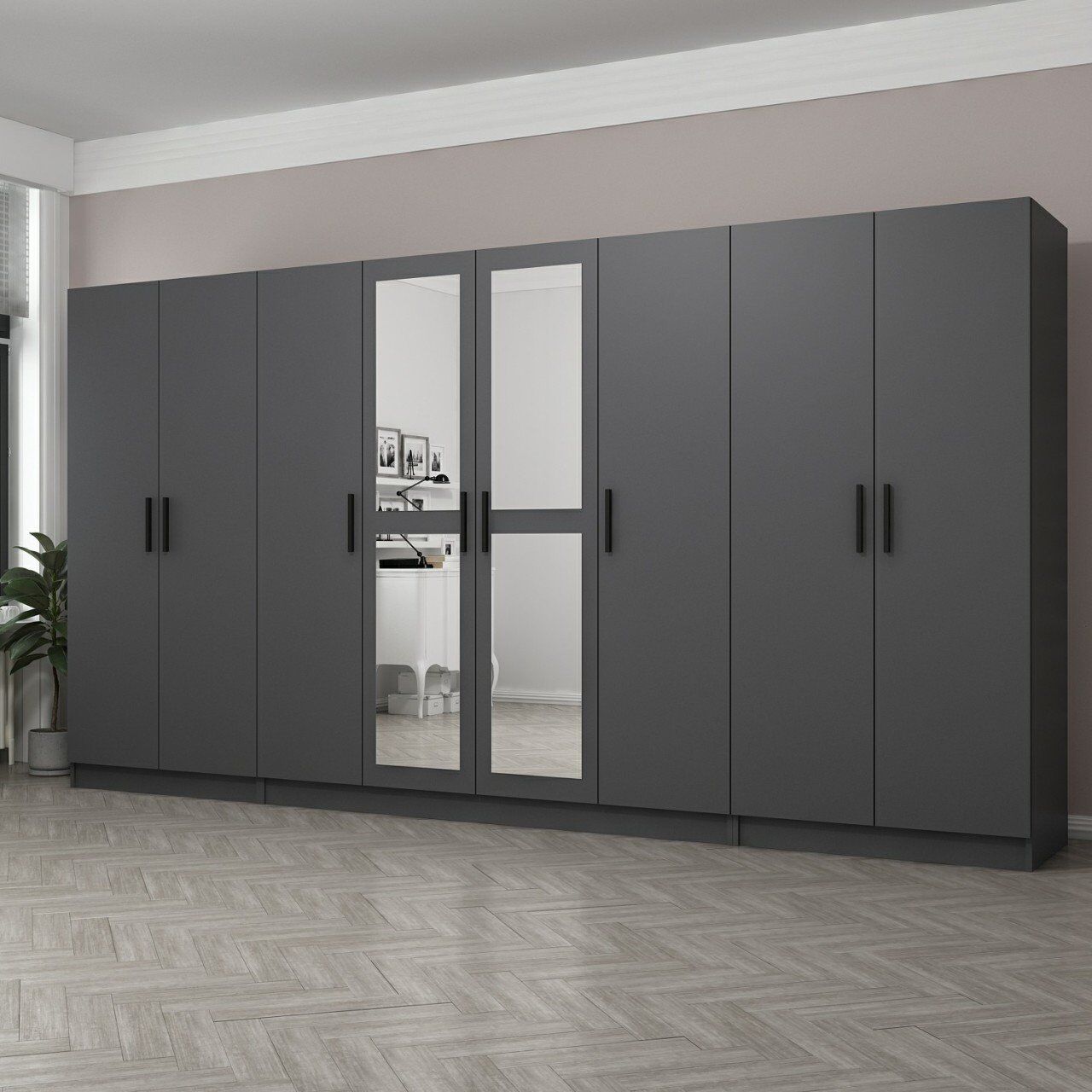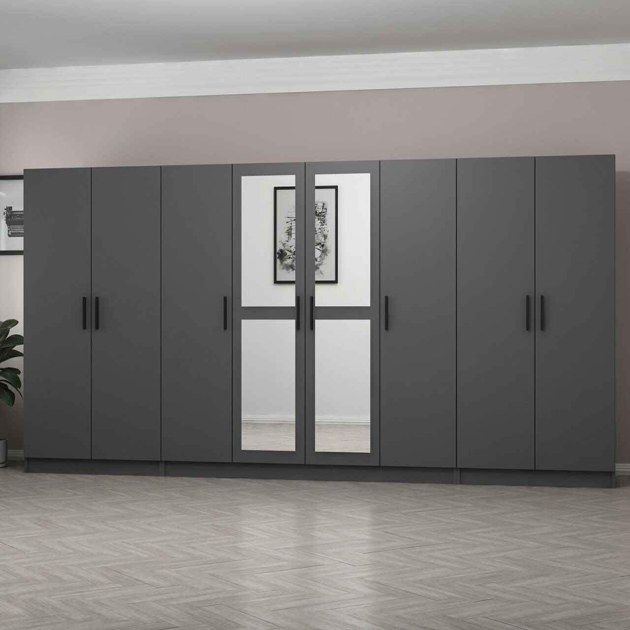 Minar Kale 8 Kapaklı 2 Aynalı 2 Çekmeceli Dolap Antrasit
