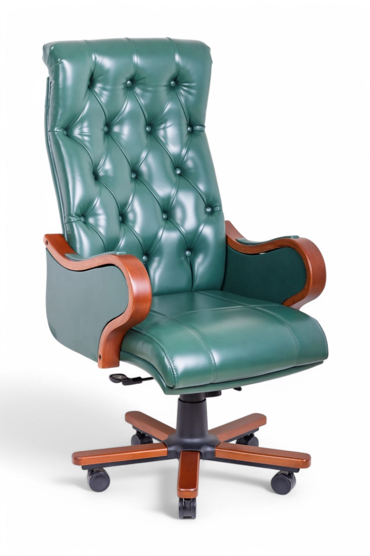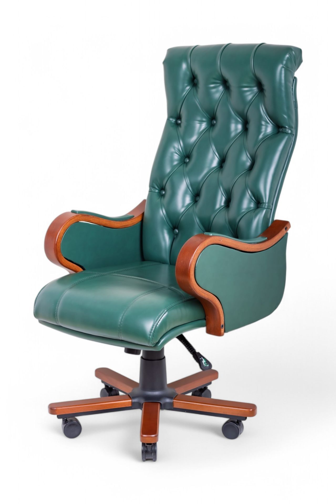 Neden Noir Chester Yeşil Deri Ahşap Makam Koltuğu?